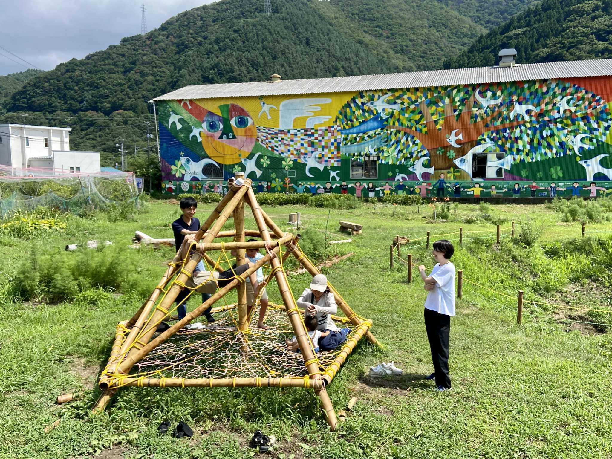 遊び場も近くの山から竹を切って作った手作りの竹ジャングルジムとハンモックが遊具として出来上がり、颯爽こどもたちが遊んでくれています。