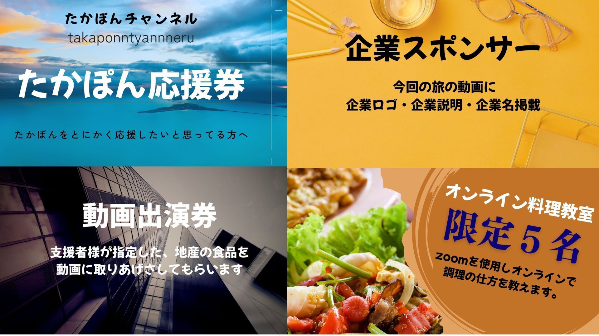 現在登録者23万人の料理系YouTube「たかぽん」チャンネルを運用しています。
