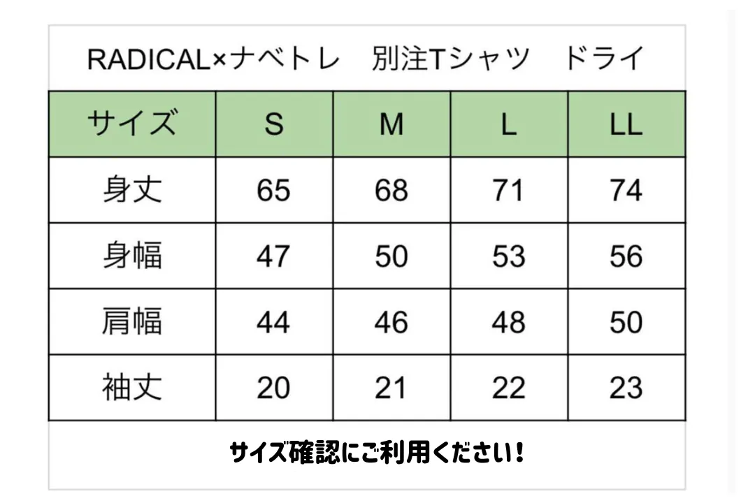 【3/6NEWS】Tシャツのサイズ表はこちらからご確認ください