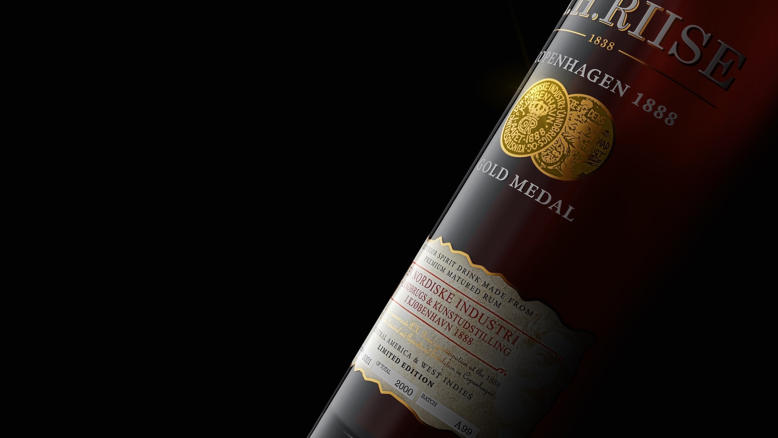 1888 年にコペンハーゲンで開催された大規模な北欧博覧会にて部門優勝のメダルに輝いたA.H.リーゼの栄光にちなんで名付けられたラムは、西インド諸島と中央アメリカの非常に高い品質のラム蒸溜所の厳選した希少な樽から独自のブレンドを作成。