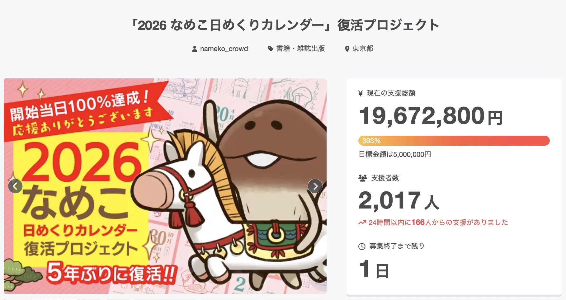 いつもお世話になっております。日めくりカレンダーはお楽しみいただけていますでしょうか。なめこクラウドファンディング運営チームから「今年のなめこクラファンプロジェクト」のお知らせです。いよいよ今年6月30日に「なめこ栽培キット」が15周年を迎えます。そんな今年のクラウドファンディングをどんなプロジェクトにするかチーム内でさまざまな企画を検討いたしました。その結果、リアルなめこ〜ズが勢揃いするスペシャルなリアルイベントを開催したい!という結論に至りました。先日ビーワークス社内にいないリアルなめこ〜ズの皆さんともお会いしてきましたが皆さんご健勝のご様子でした。もちろんリアルイベント以外のリターン品も計画しています。またプロジェクトにご支援いただいた方全員を対象に「イベントのダイジェスト動画のURL」を後日配布いたします。プロジェクトページはこちらからご覧いただけます。プロジェクトの支援受付は2026年2月16日(月)19:00を予定しています。https://camp-fire.jp/projects/926534/viewちなみにプロジェクトのお気に入り登録をしていただけるとアカウント登録メールに通知がいくほか、プロジェクト開始直後にスムーズにご支援いただけるようになるのでおすすめです!!今回も皆様のご支援のもと、素敵なプロジェクトにしていきたいと考えておりますので引き続き応援よろしくお願いいたします!!