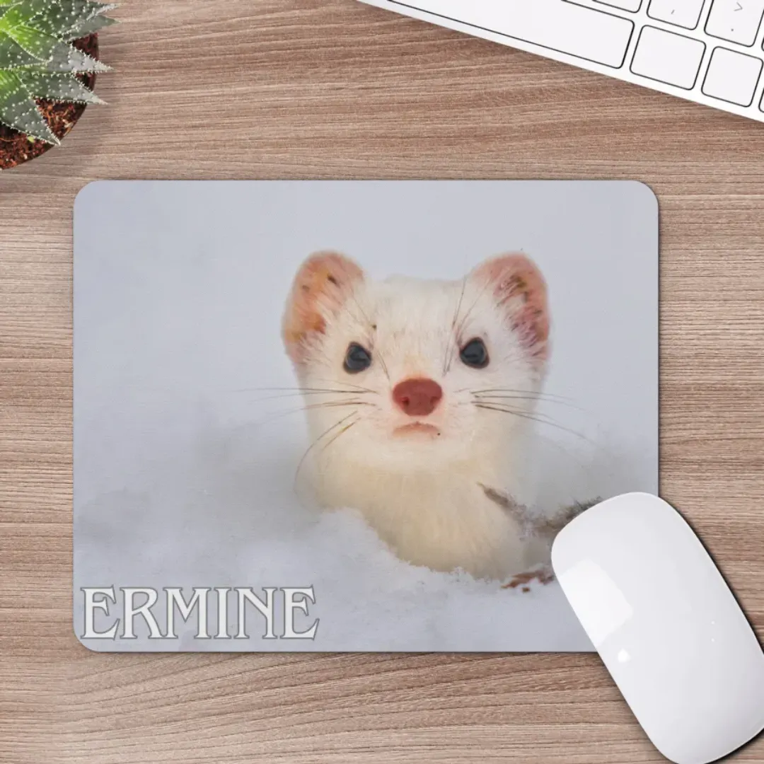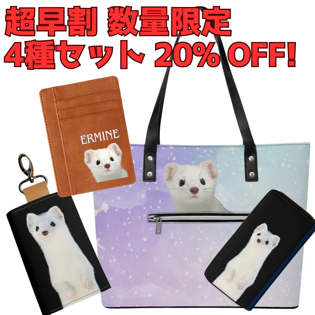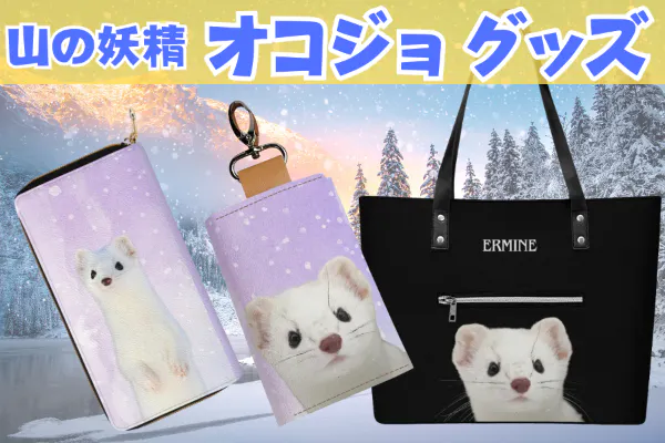 そんな美しい白い毛を身にまとう冬のオコジョをグッズ化。