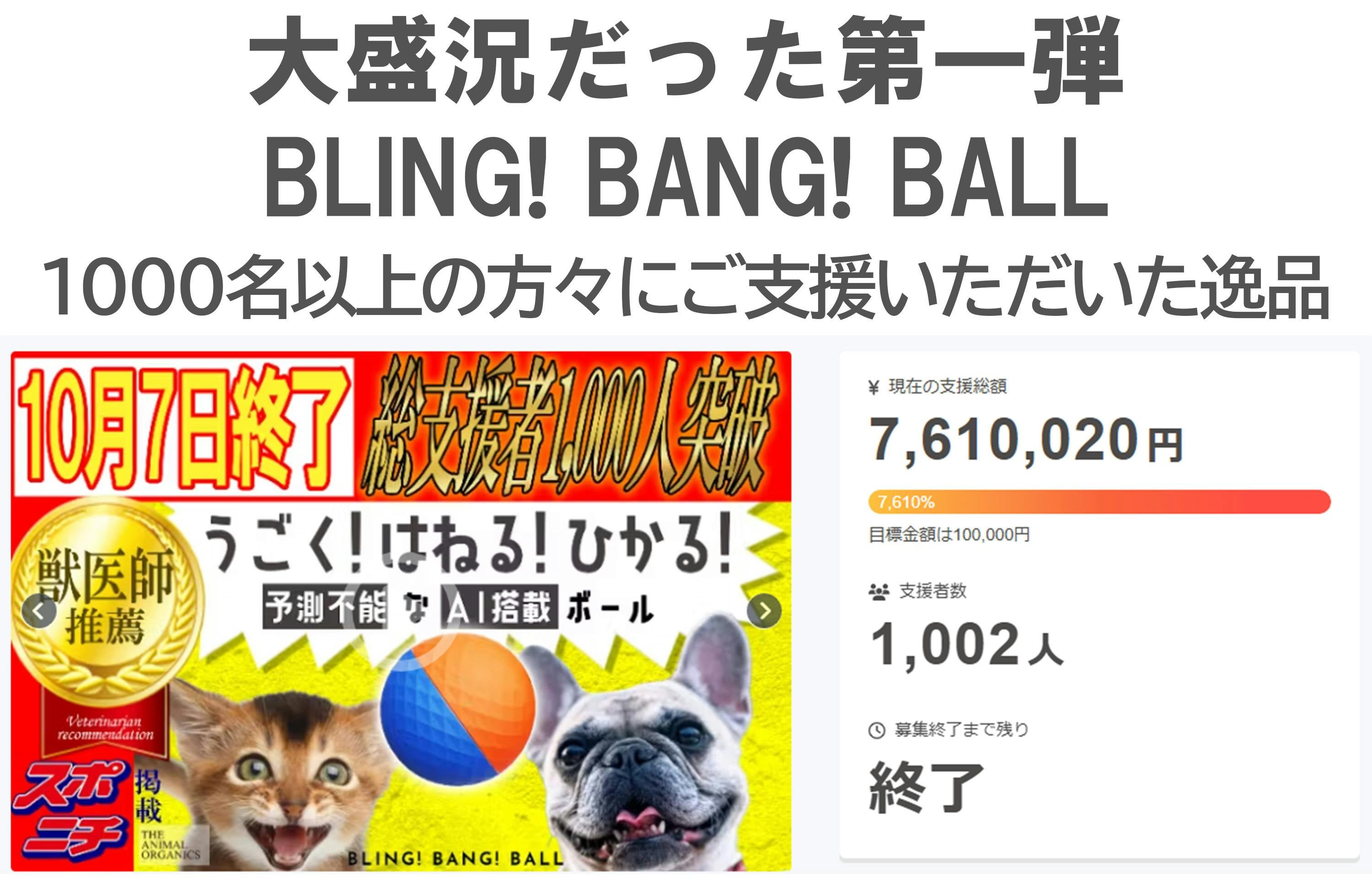 と心配するお声が思いのほか集まり、愛犬愛猫のストレスを思い切り解消できる商品を作りたい、という思いに駆られて開発したのが BLING! BANG!BALL・BLING! にゃん! BALL です。