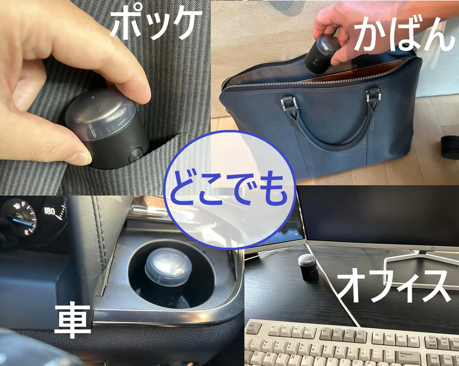 A: 軽量でコンパクトな設計なので、ビジネスバッグや車内の収納スペースにも簡単に収まり、出張や旅行にも便利です。