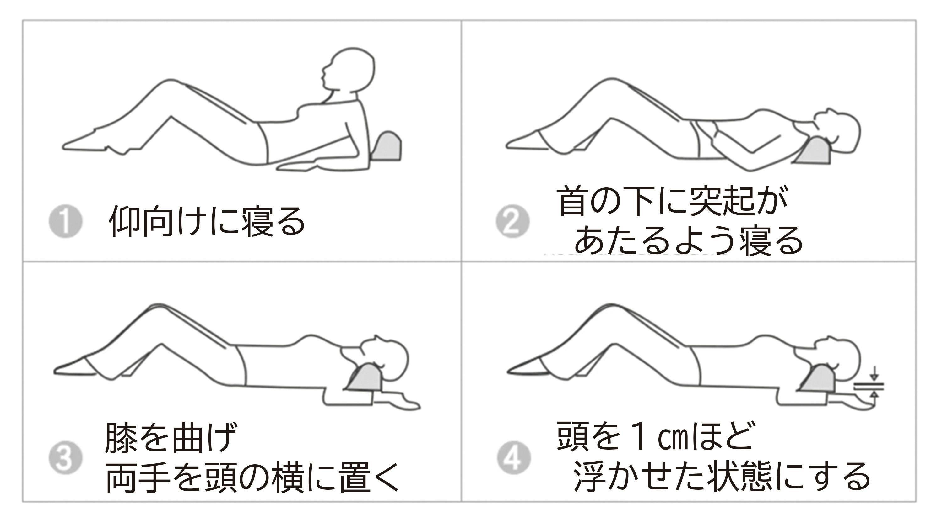 A: 頸椎太郎は、床に置いてその上に仰向けになり、首をサポートするように位置を調整して使用します。毎日8分間使用することで、首や肩の筋肉をストレッチし、リラックスさせることができます。ストレートネックの改善や、正常な頚椎のカーブを取り戻すことを目指しています。