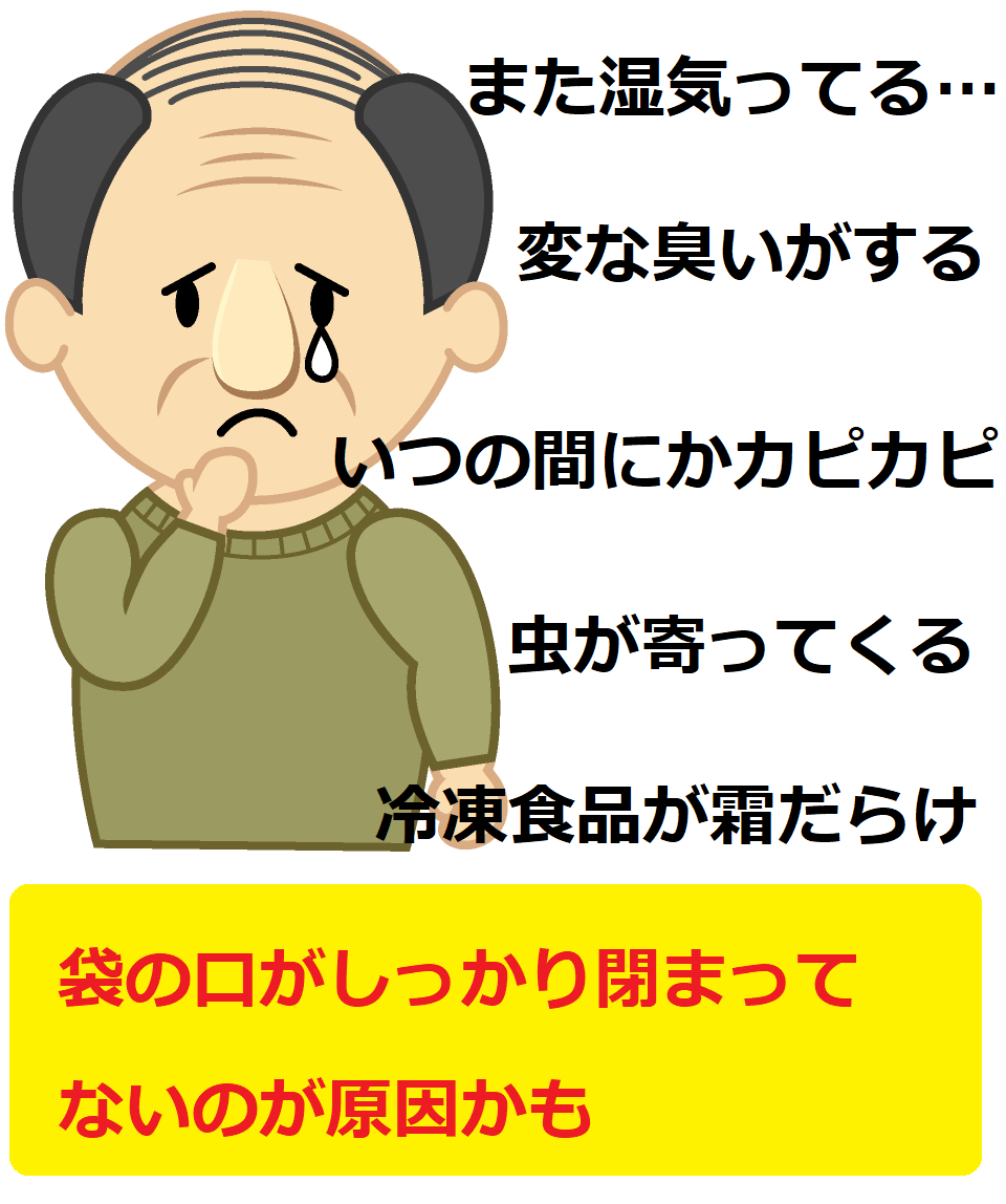 密封できていない袋は、湿気・酸化・雑菌・ニオイ漏れなど、トラブルの温床。