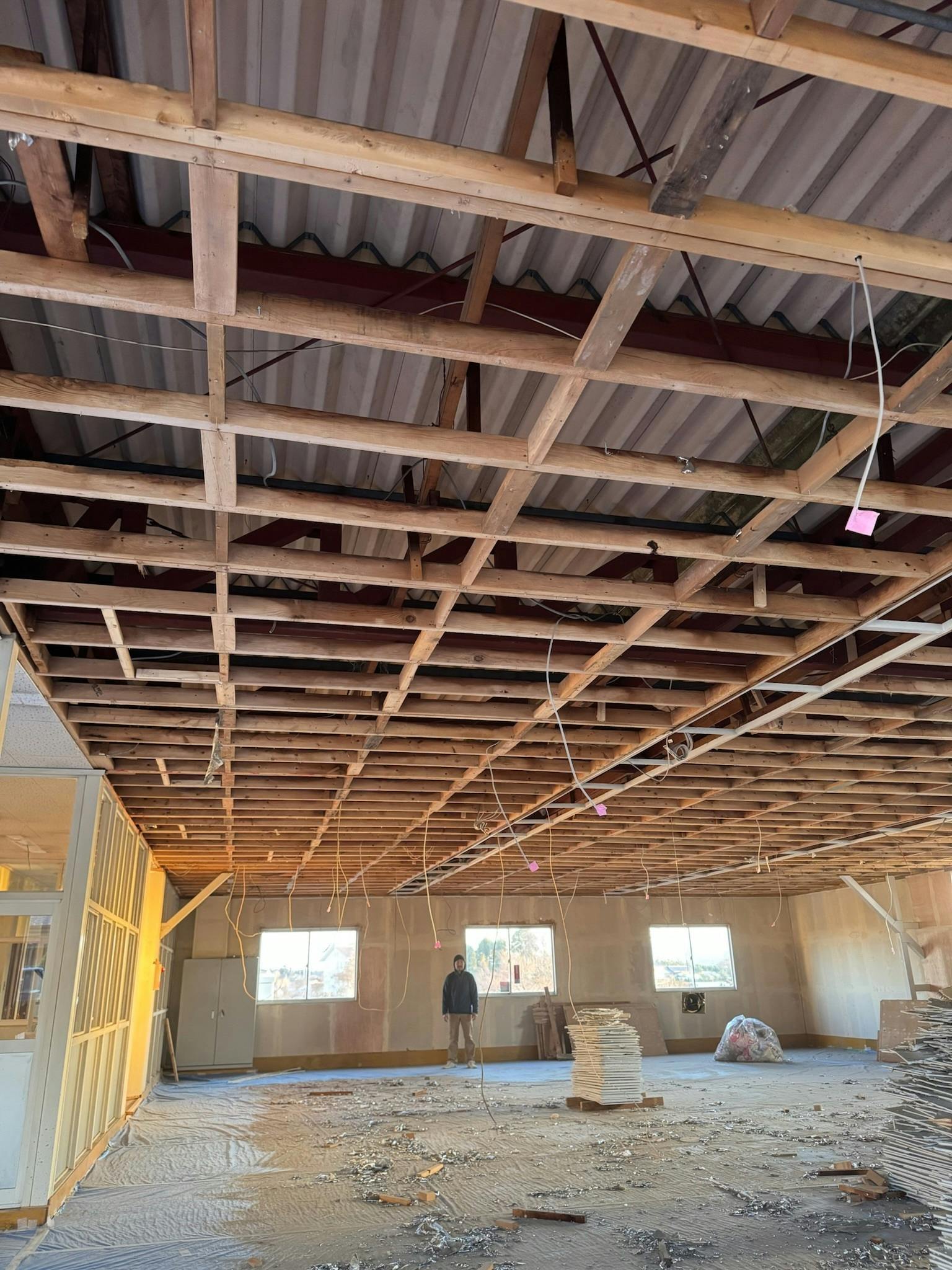 (天井から板を外しているので、下側が乱れていてすみません 笑)