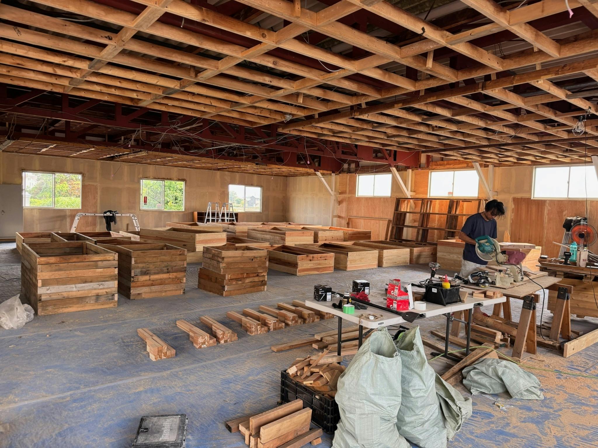 現在は、エデンの施設内にて、たくさんの大きなレイズドベッドを量産中。