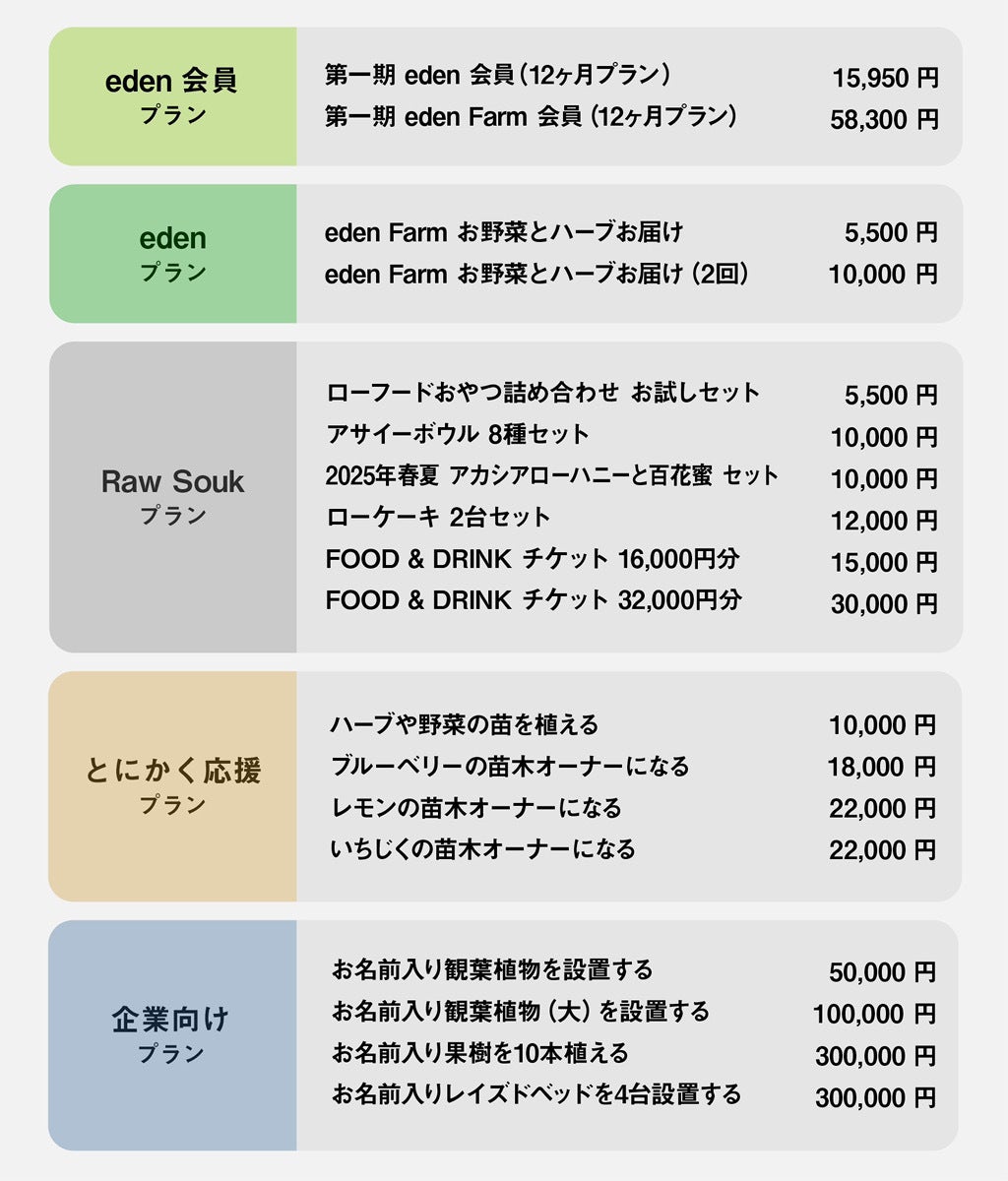 Raw Souk edenが完成したあかつきには、オンラインショップでも、農園の作物から生まれる限定アイテムなどを増やしていきます。