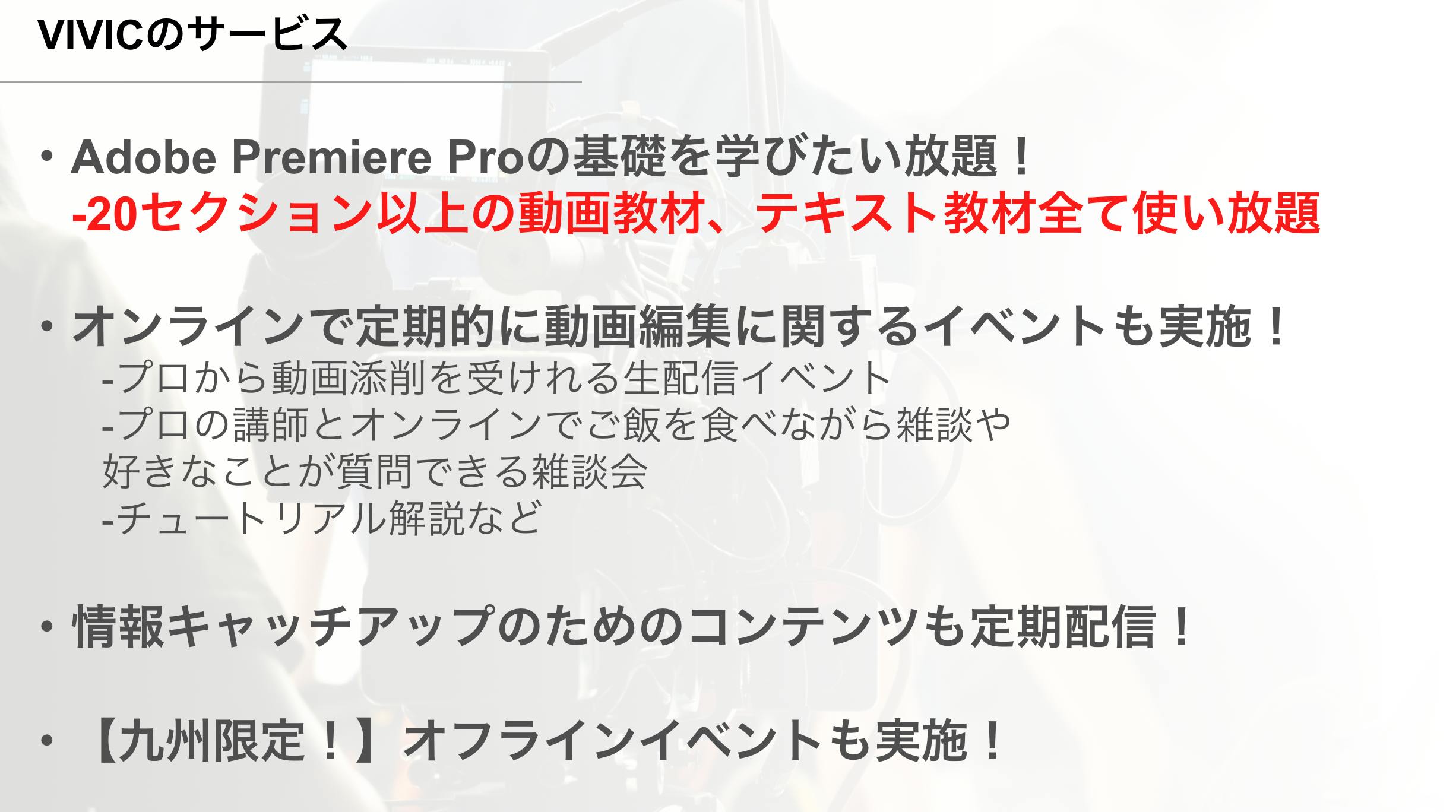 VIVICは、月額 2,500円(税込)で動画編集の基礎を網羅的に学習することができるだけではなく、