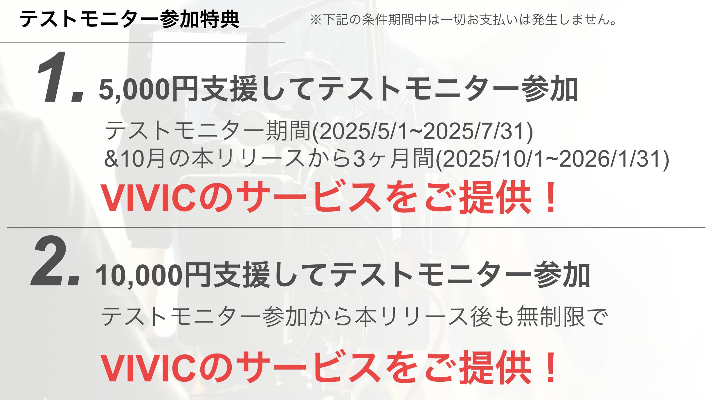 2025年5月1日より、VIVICのテストモニターとしてご参加いただけると共に、