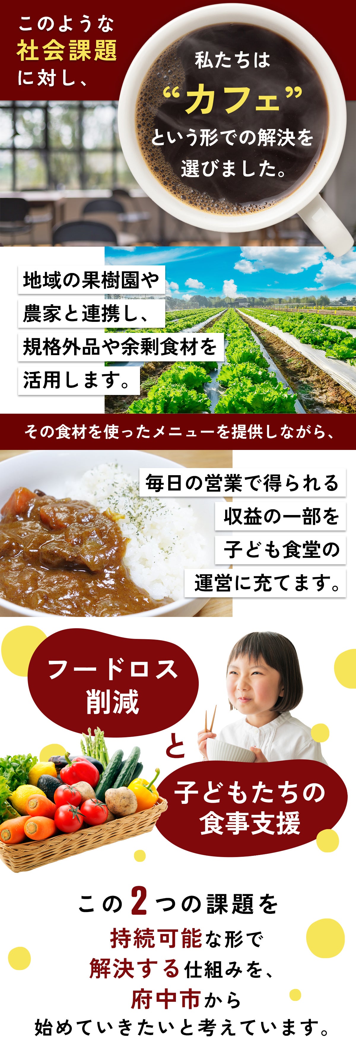 当カフェでは地元府中市の食材を積極的に活用し、フードロス削減にも取り組みます。