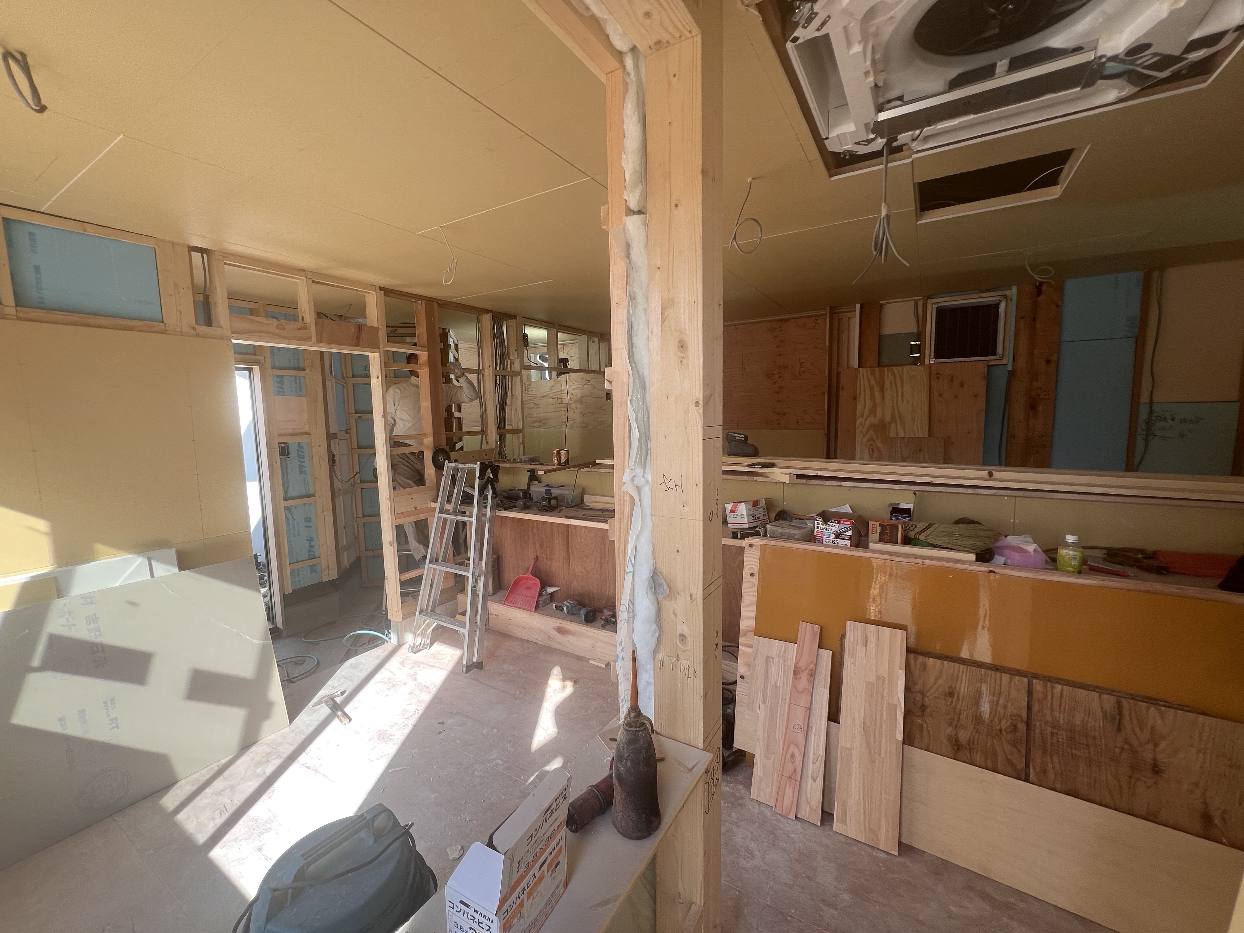 天井がビックリする程低いので、お客様との距離をとにかく近くしたくて、上に付けるはずやった棚を取り止めました!