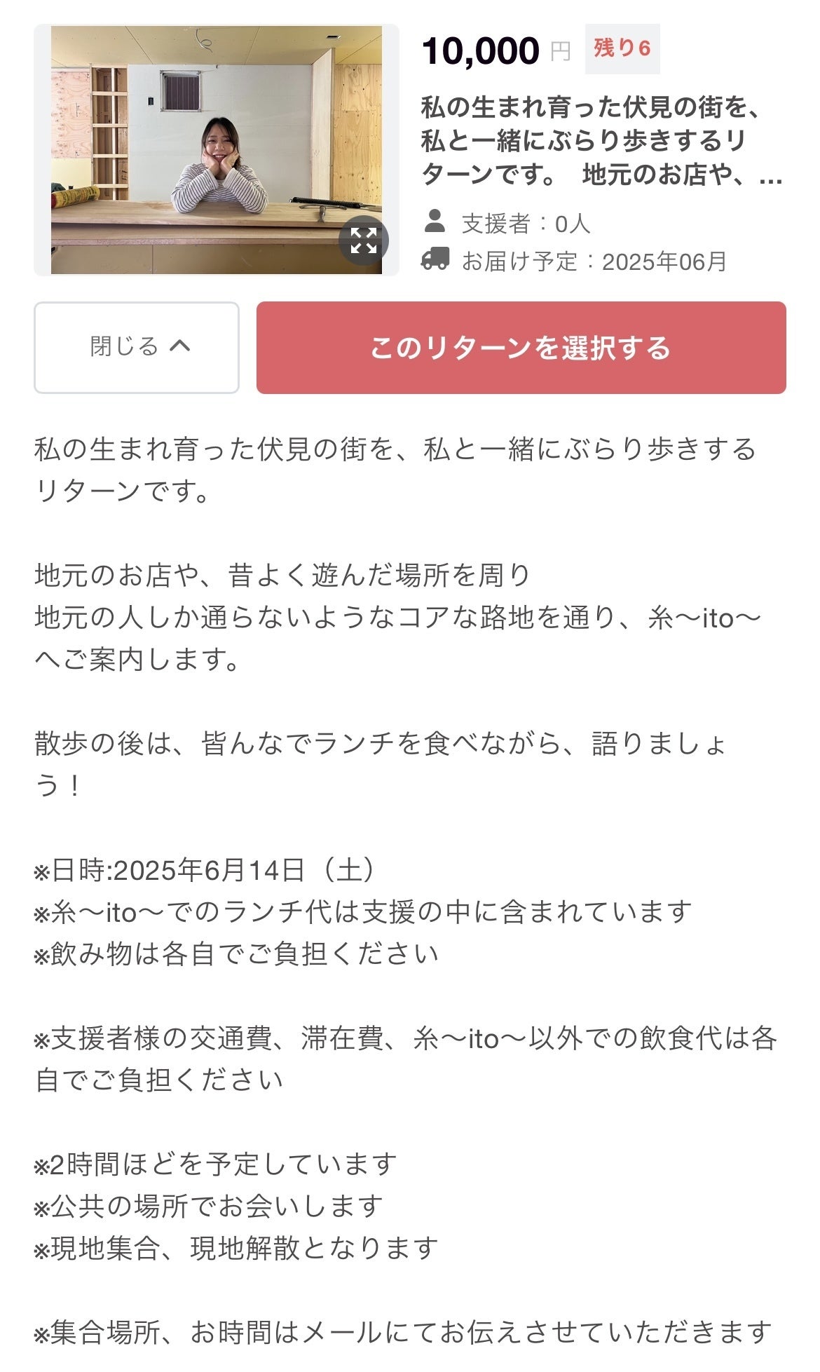 リターンの中に糸でのランチ代も含んでいます!