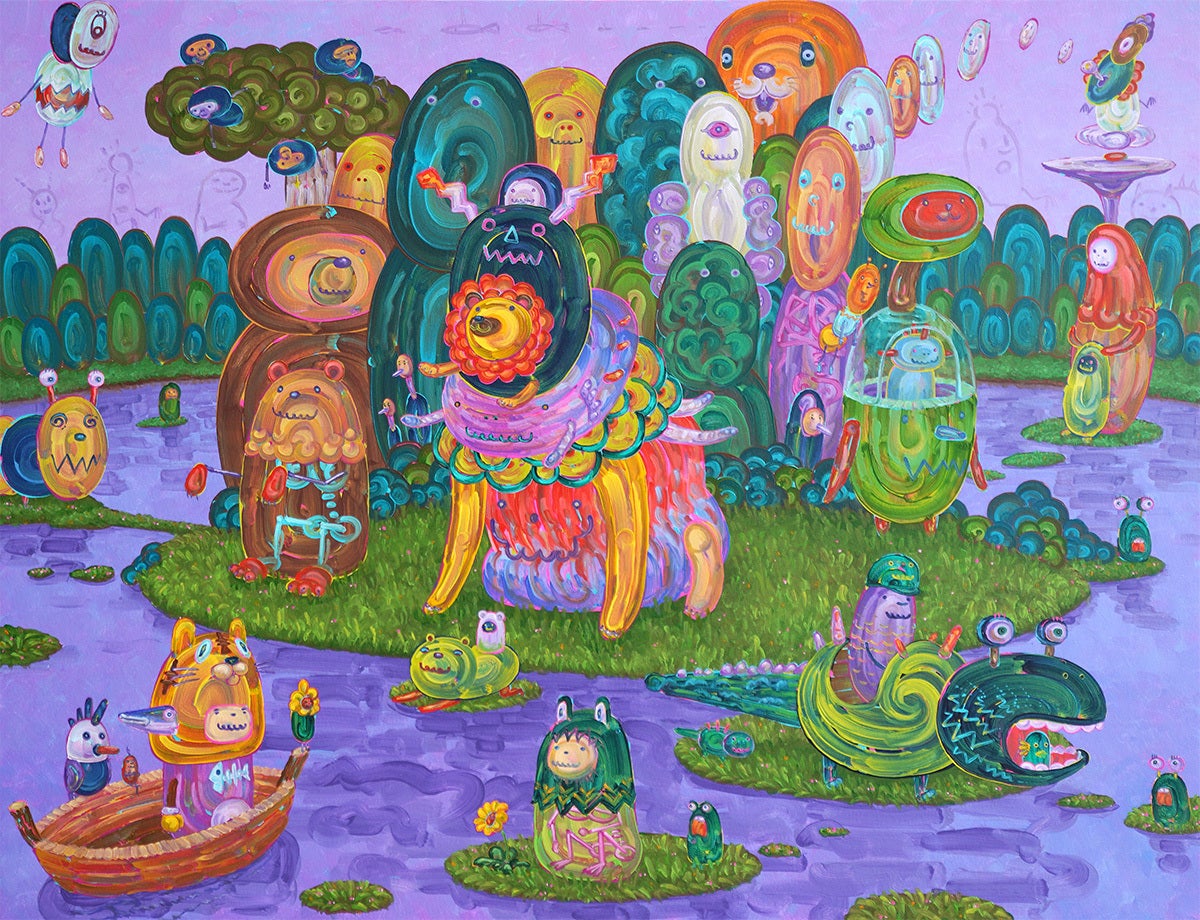 近年、特にコロナ禍、外出自粛など社会的な制約が厳しい頃に外出することができない抑制から、アトリエ内で妄想を繰り返す日々の中で生まれた冒険絵画のシリーズがとても心地よく、多くの方から好評を得ることになりました。