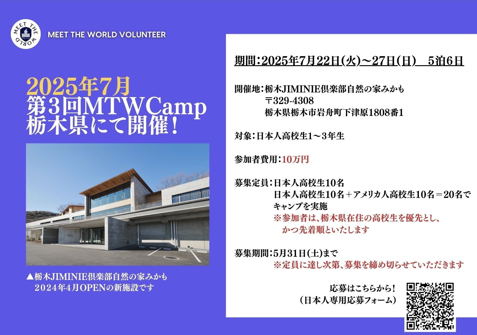 このキャンプが続けば続くほど、地方の若者が世界と繋がるチャンスが増え、地域の活性化や未来の日本を支える人材育成に繋がります。地方創生と真の意味での「日本の国際化」の実現には、皆様のご支援が欠かせません。