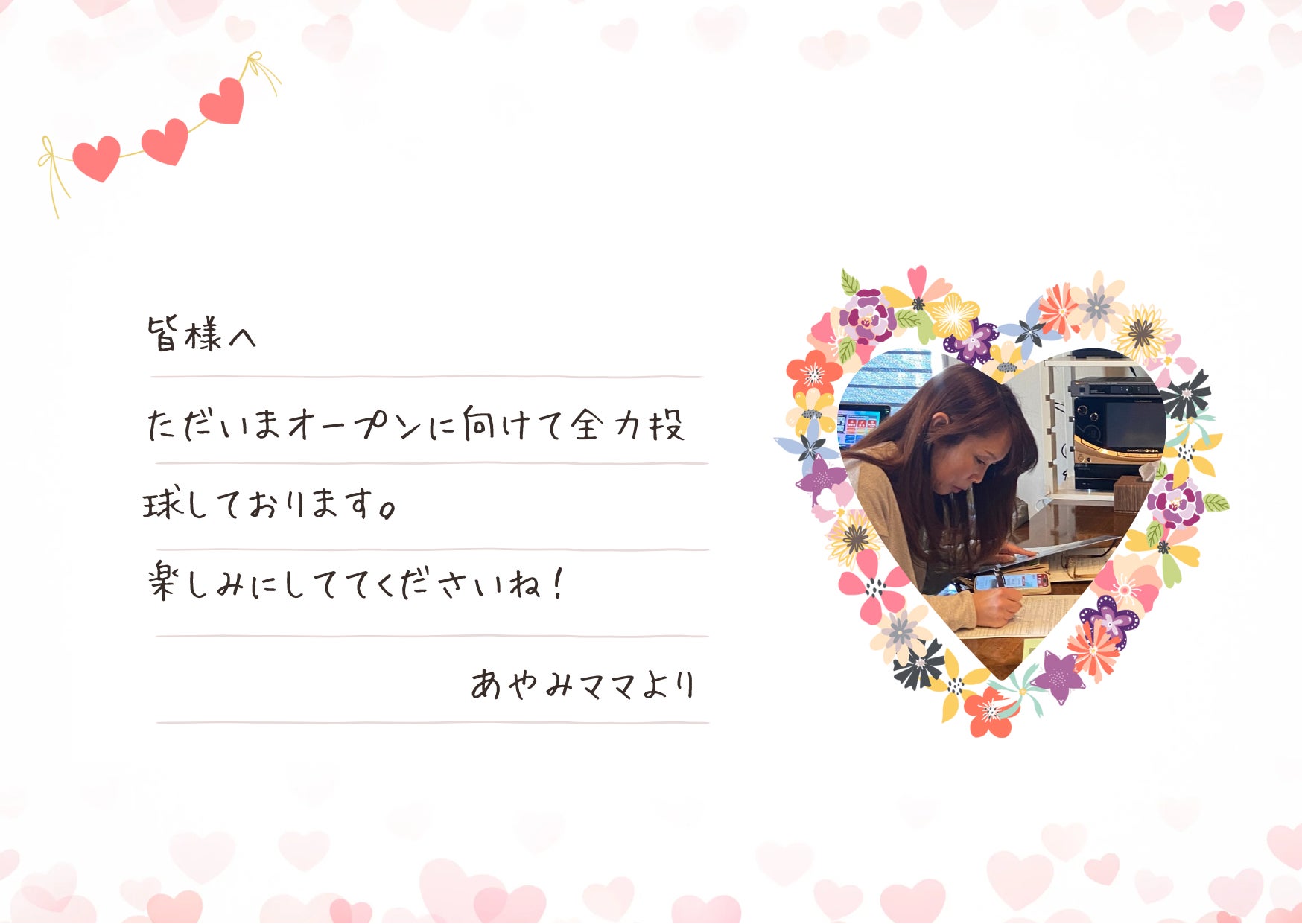応援くださった方はメールやインスタでお礼のメッセージをアップいたします。(4月オープン後)