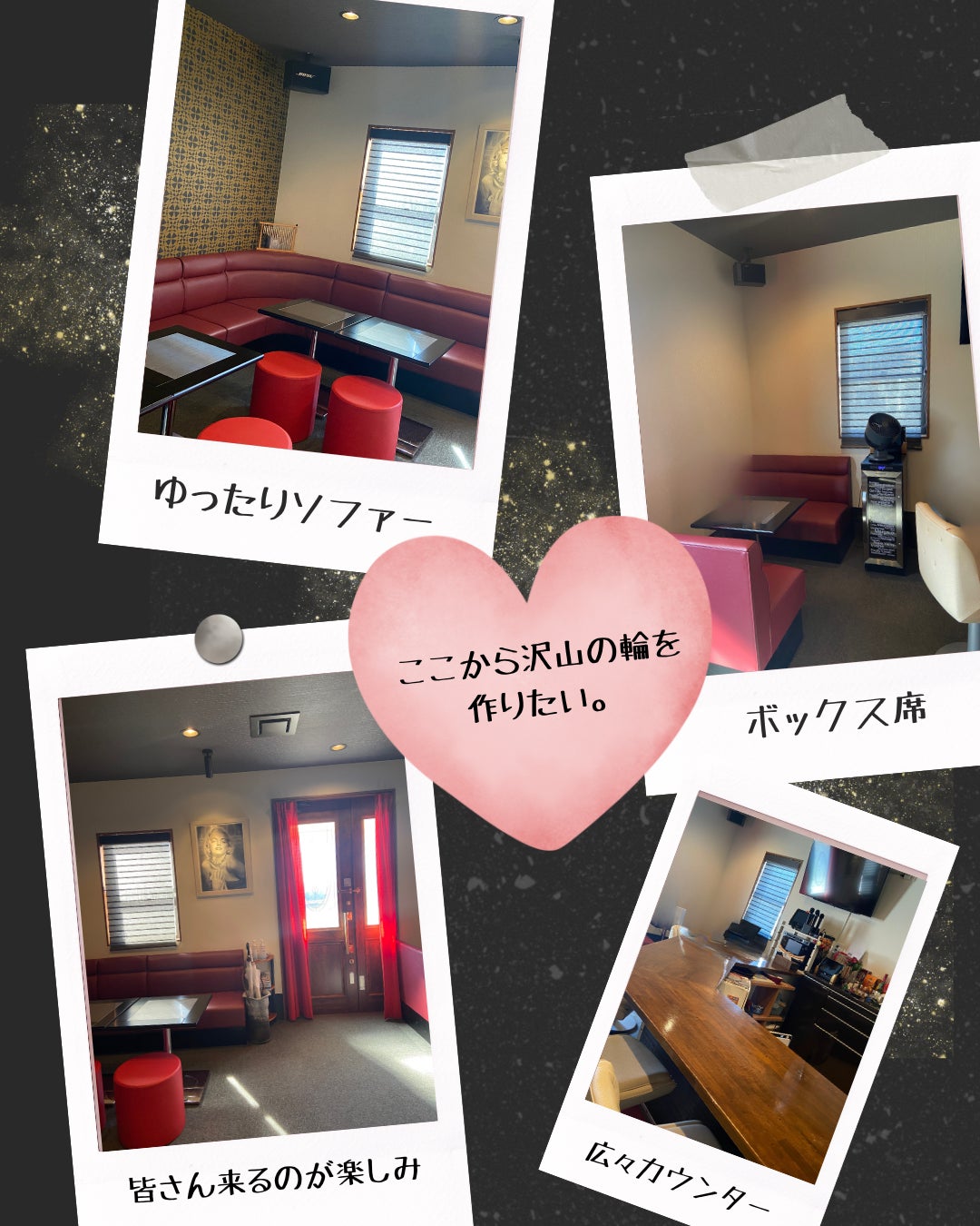 スナックはただの飲食を提供する場ではなく、地域のコミュニティの中心として機能し、人と人とが繋がる場にしたい!これが私たちの目標です。もちろんカラオケはありますが、全然歌えなくても大丈夫です。私達と沢山お喋りしましょう。カラオケ好きさんは歌ってストレス発散しちゃってください。
