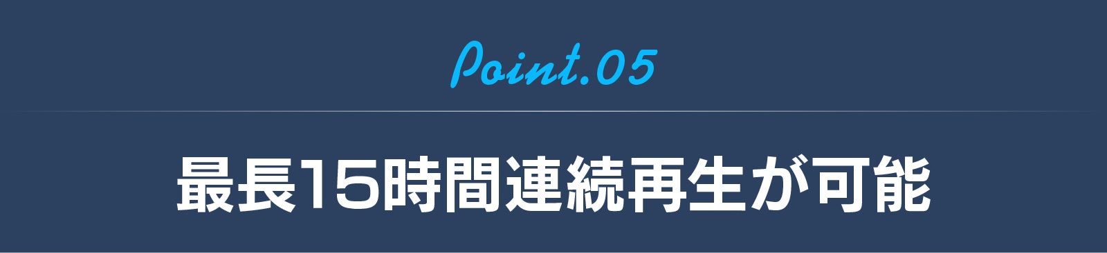 A: フル充電で約15時間の連続再生が可能です。これにより、一晩中音楽を楽しみながら安心して眠ることができます。