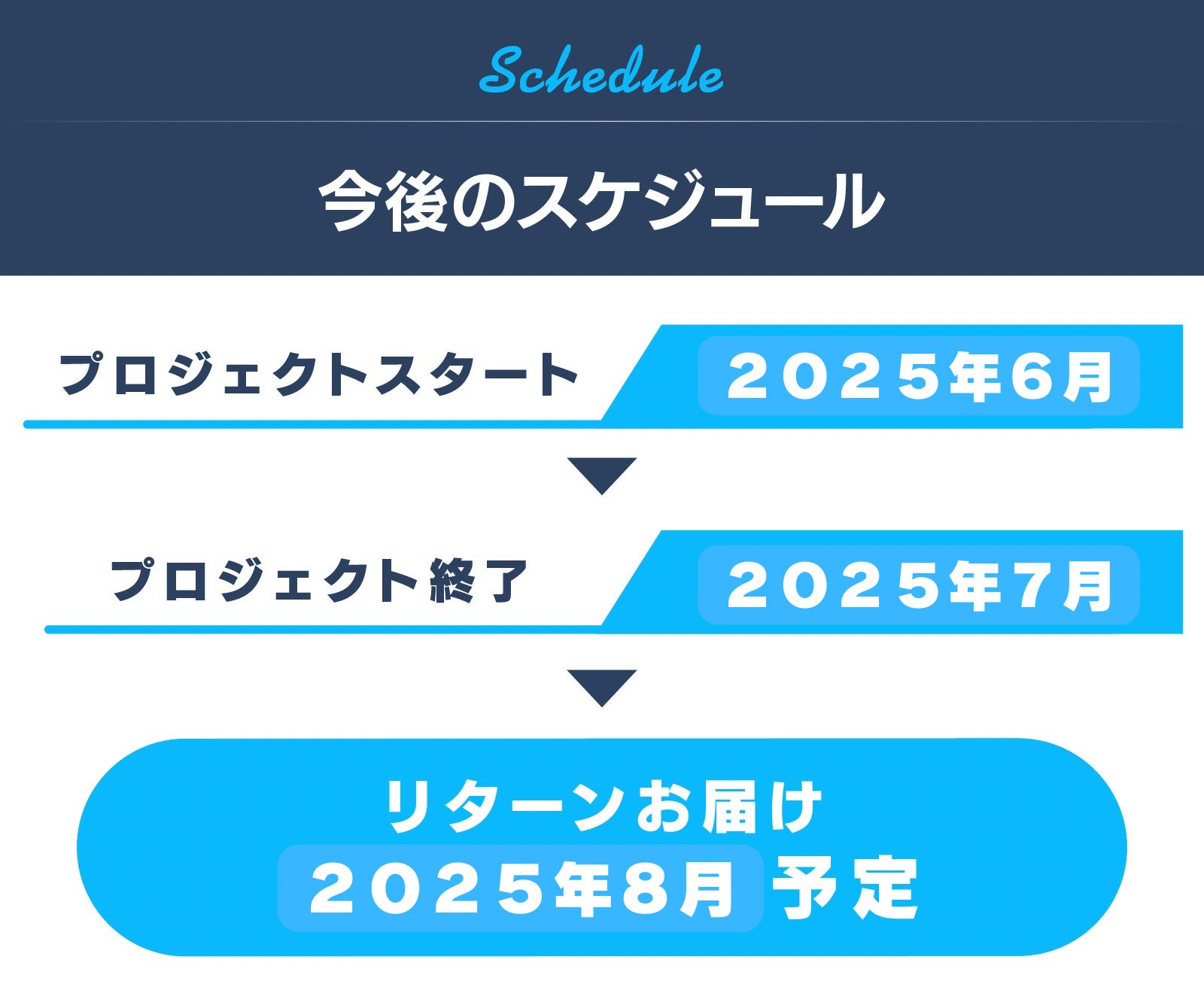 ●引渡し時期: 各リターン詳細に記載の発送予定月を引き渡し時期とします。但し、開発・生産状況によって遅れが生じる場合がありますのでその際は当プロジェクトページ内の「活動報告」または購入者へのメール等で連絡します。