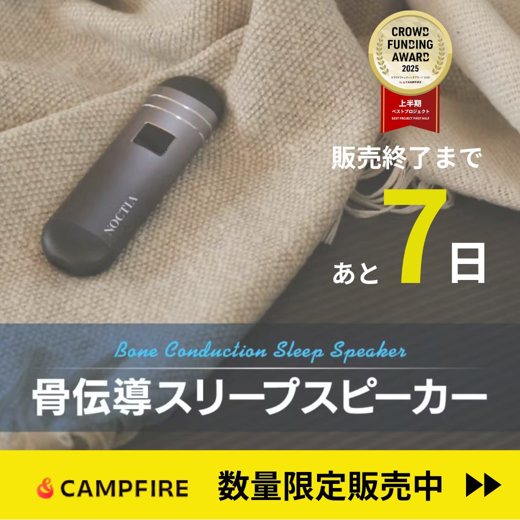 ここまでたくさんのご支援、本当にありがとうございます。いよいよ本プロジェクトも、残りあと1日となりました。プロジェクトはこちら▶▶▶環境が変わるこの季節は、気づかないうちに心や身体に負担がかかりやすい時期でもあります。「なかなか寝つけない」「眠りが浅い気がする」そんな小さな変化を感じている方もいらっしゃるかもしれません。この骨伝導スリープスピーカーは、耳をふさがず、やさしく音に包まれながら、あなた本来のリズムで眠りへと導くことを目指したアイテムです。忙しい毎日の中でも、ほんの少し、自分を整える時間を持っていただけたら——そんな想いを込めています。プロジェクト終了まで、残りわずか。ぜひこの機会にクラファン受賞の骨伝導スリープスピーカーをチェックしてみてください♪最後まで、どうぞよろしくお願いいたします。