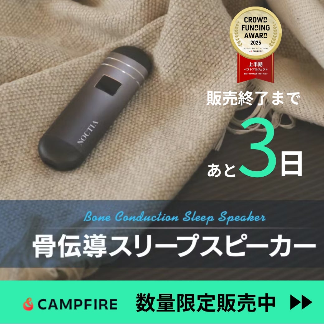 骨伝導スリープスピーカーのプロジェクトも、いよいよ残り3日となりました。