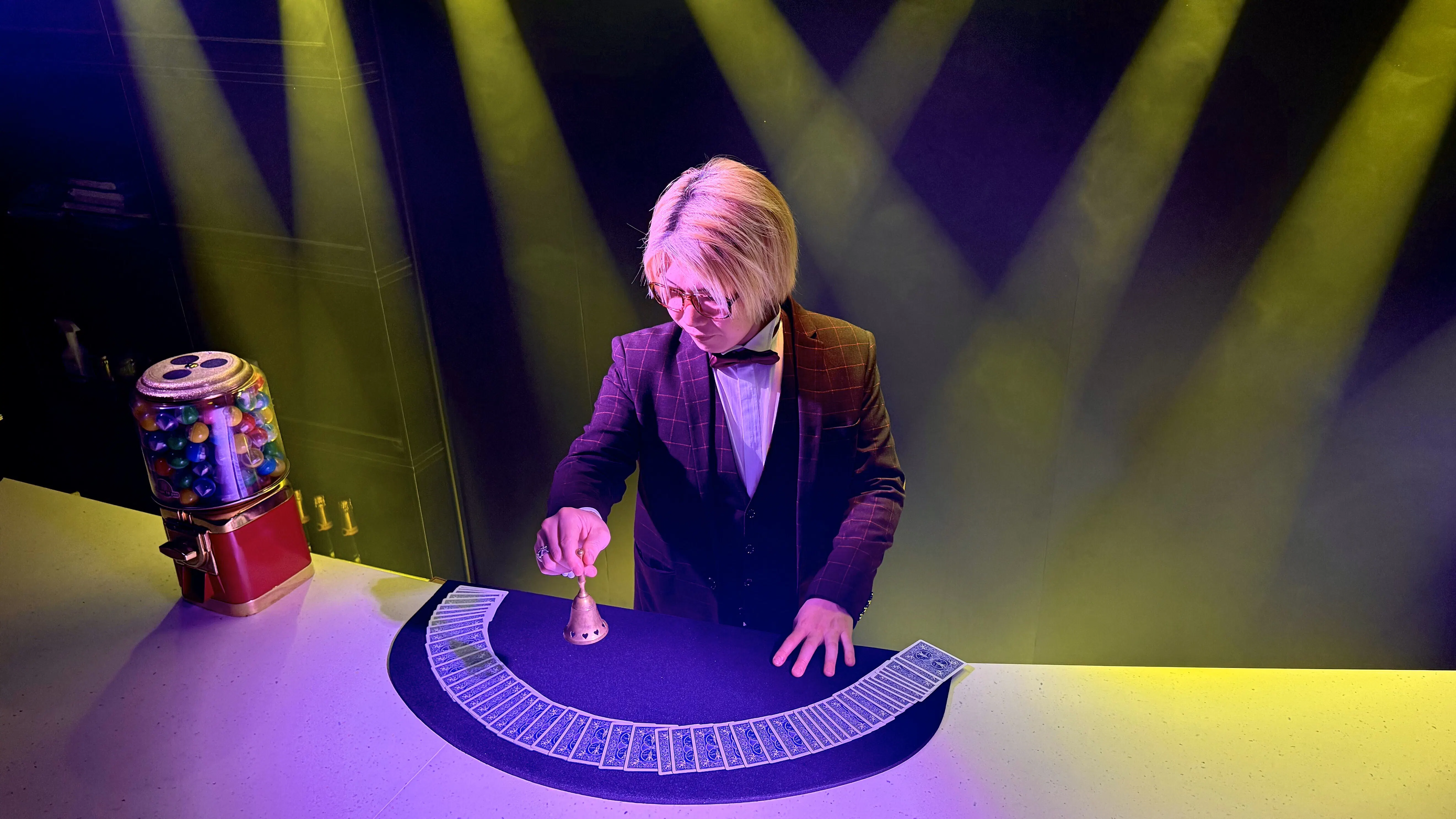 大きなステージでのマジックは、全員で一斉に楽しめる一体感が魅力的ですが、お客様のすぐ近くで繰り広げられるテーブルマジックには、ステージマジックよりも生で参加して体験できることによる、不思議さや臨場感があります。目の前で現実を超えたような体験をすることで、より強く「本物の魔法」に触れたような感覚を味わっていただけるのではないかと思っています。