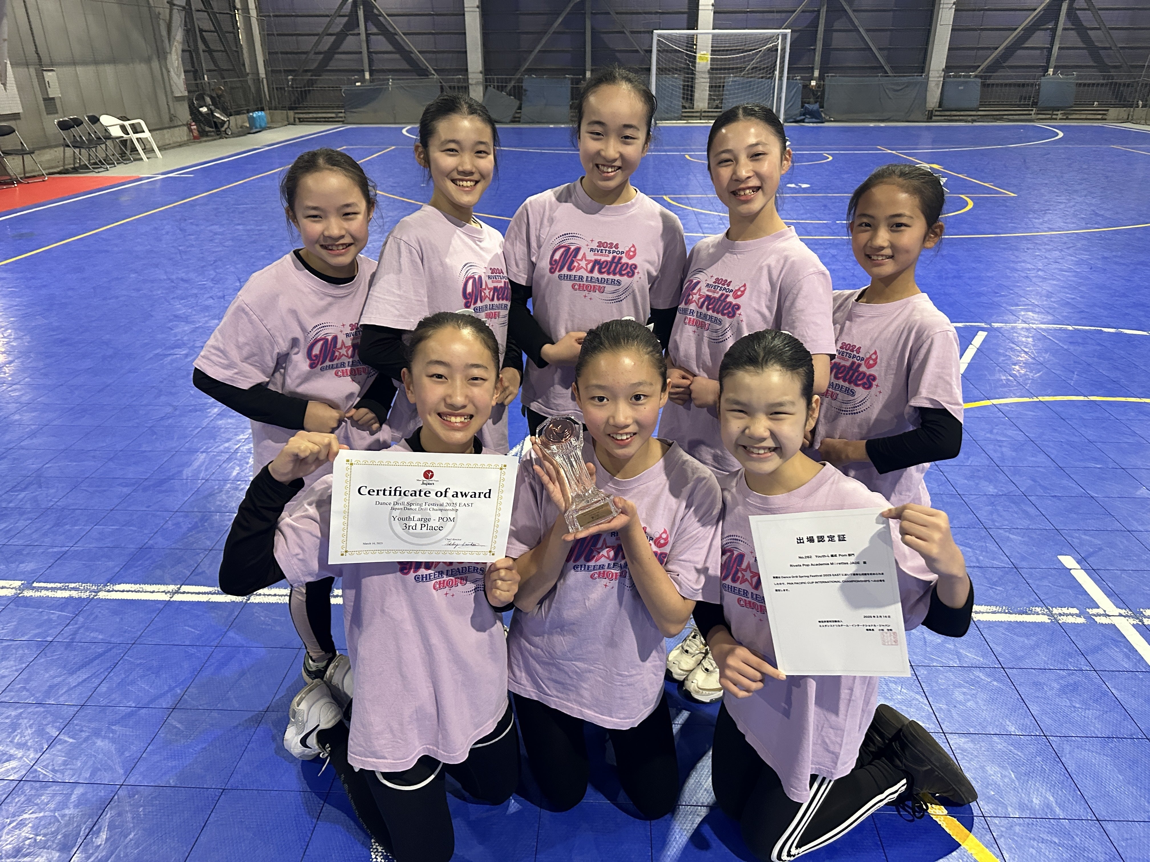 2025/05/05 04:50★2025年5月4日★いよいよ決勝です!昨日よくなかった部分を取り返せるようにと、アップから気合満点。やるべきことがわかっているので、メンバー同士でも声をかけ合うことができます。リハーサルなど、時間がタイトな中、集中して過ごすことができました。演技は、昨日より良くなったところもありつつ、ミスもあったので思うような演技ではなく…。それでもコーチから見ると、絶対決めてやる!という気迫に、感動するようなパフォーマンスでした。ビデオチェックをした後は言葉も少なく、、、花道でみんなにお出迎えをしてもらったら、安心したのもあり、みんなで大号泣。。。控室でミーティングをしても落ち着かない状況ではありましたが、他の日本チームを応援し、ランチを食べ、アワードの時間を待ちました。9チームが決勝に残り、アワードは9位から呼ばれます。「9位以外だったら、みんなで喜ぼう」なんて約束をし(笑)なかなかチーム名が呼ばれない…。最後の2チームとなり…なんと!一緒に日本から参加したShooting starさんと同率1位!!!状況を理解できず、会場の盛り上がりよりワンテンポ遅れて喜ぶメンバーたち。(ステージから降りてから、優勝したと理解したメンバーも)4位からの大逆転となりました!!応援ありがとうございました!あと数時間となりますが、クラウドファンディングを実施しています。最後にお祝いをいただけると嬉しいです☆ もっと見る