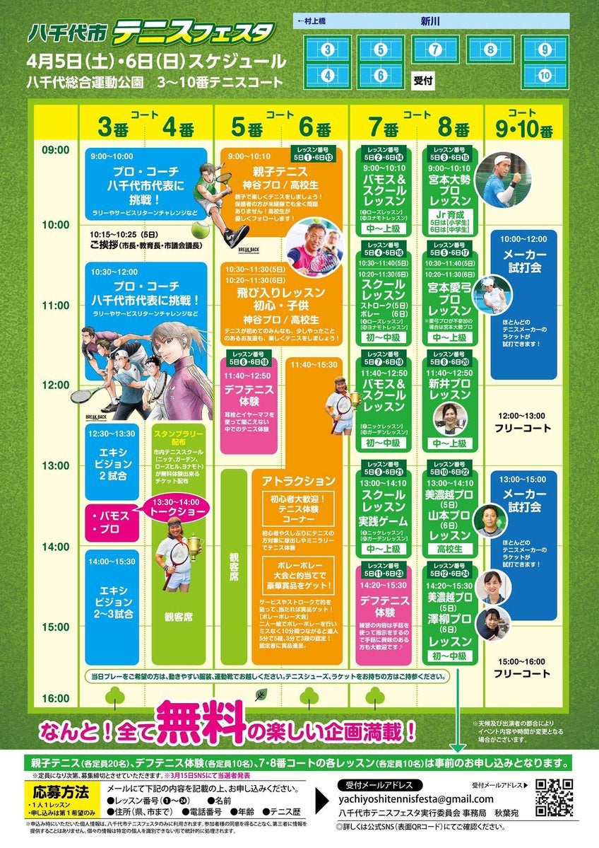 メールは yachiyoshitennisfesta@gmail.com