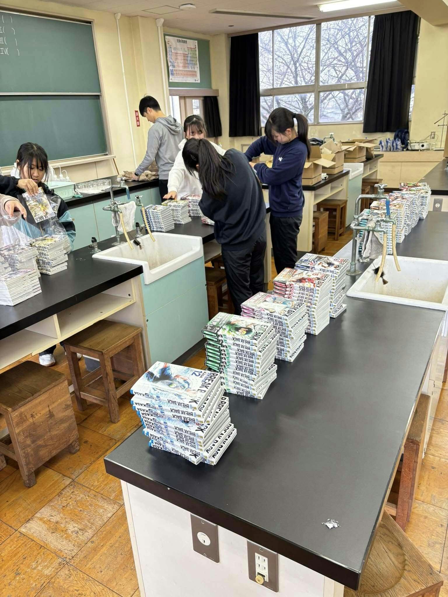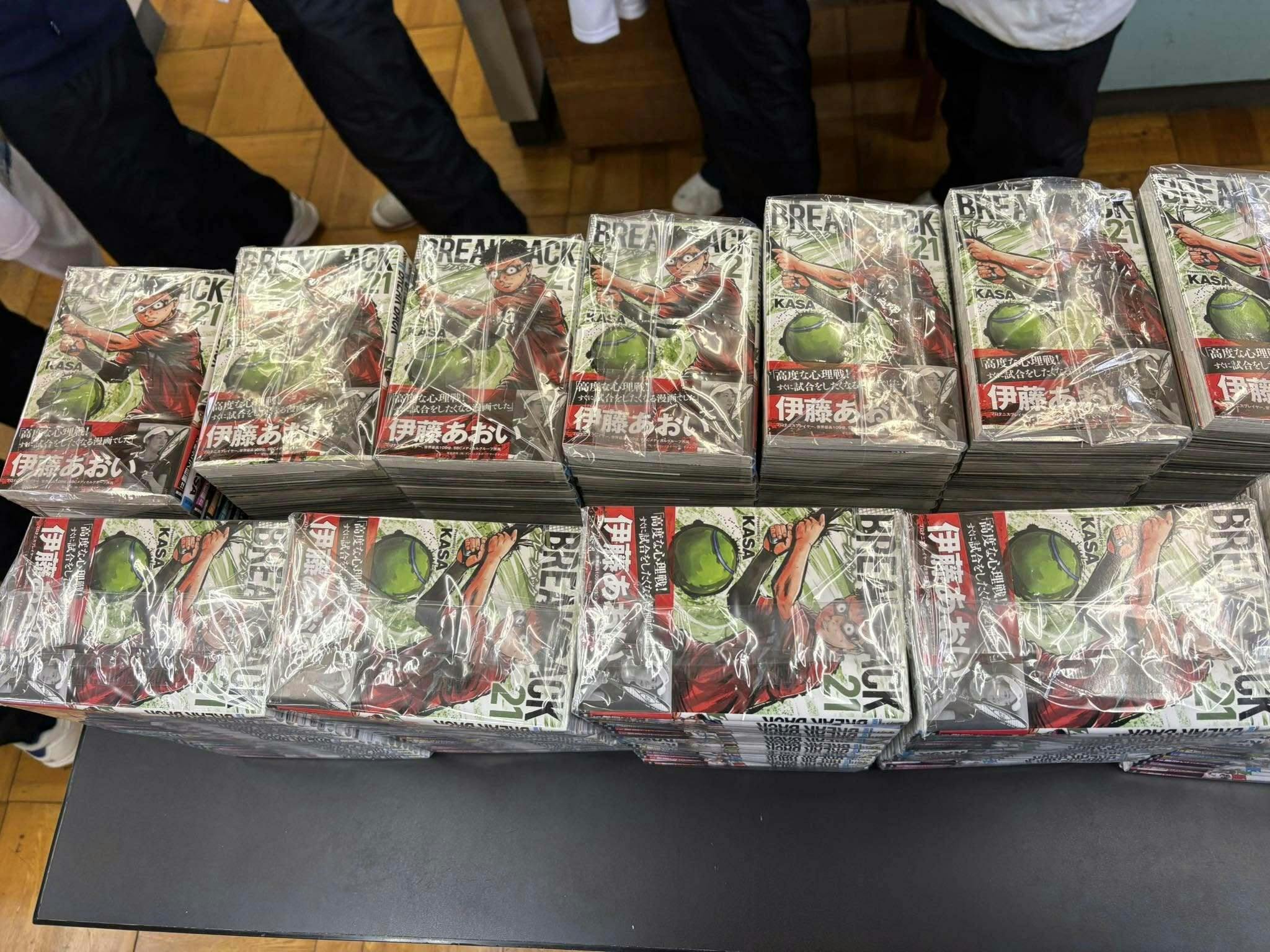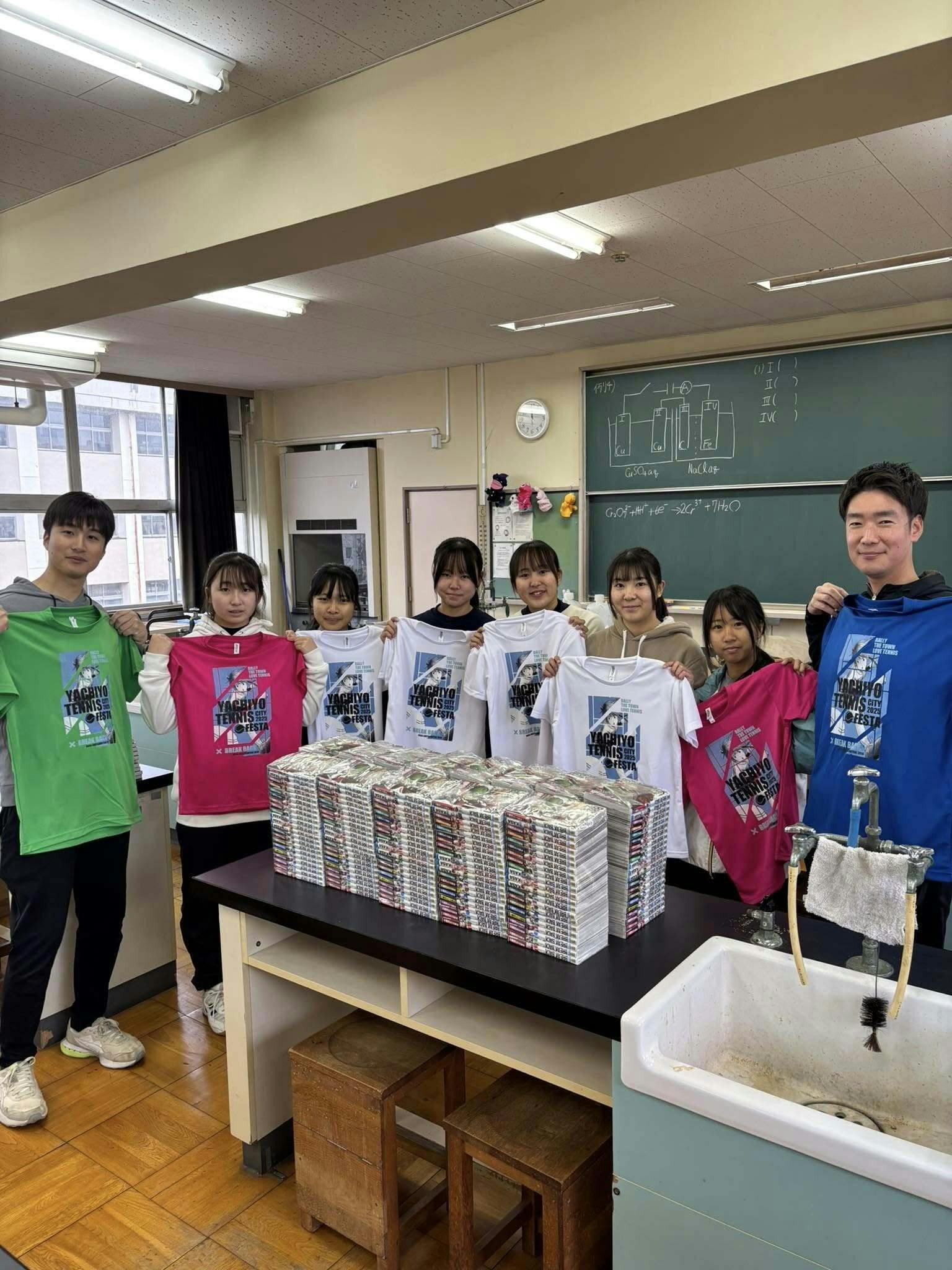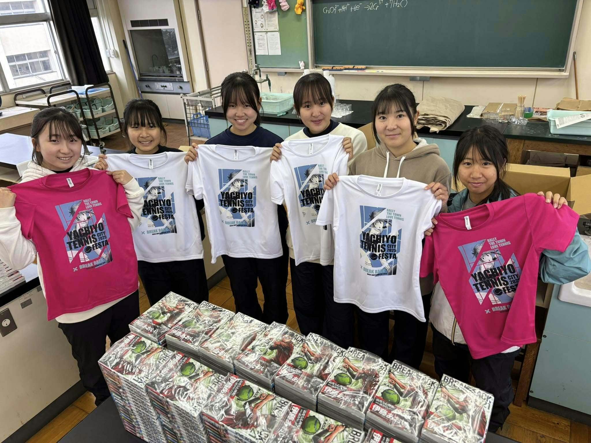 八千代高校テニス部のみなさんにBREAKBACK全21巻フルセットの袋入れを手伝っていただきミィーティングをしました(写真掲載の許可OK)