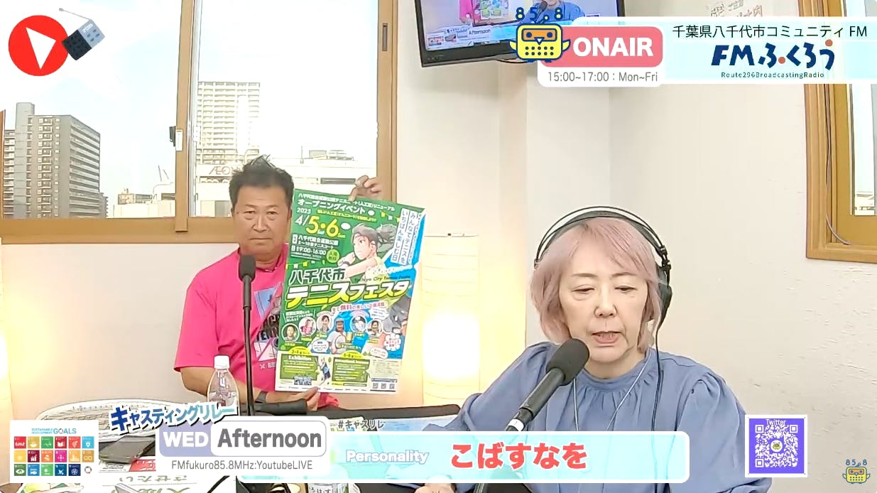 八千代市のFMラジオ生放送番組にてたっぷり1時間「テニスフェスタ 」のPRをしてきました!