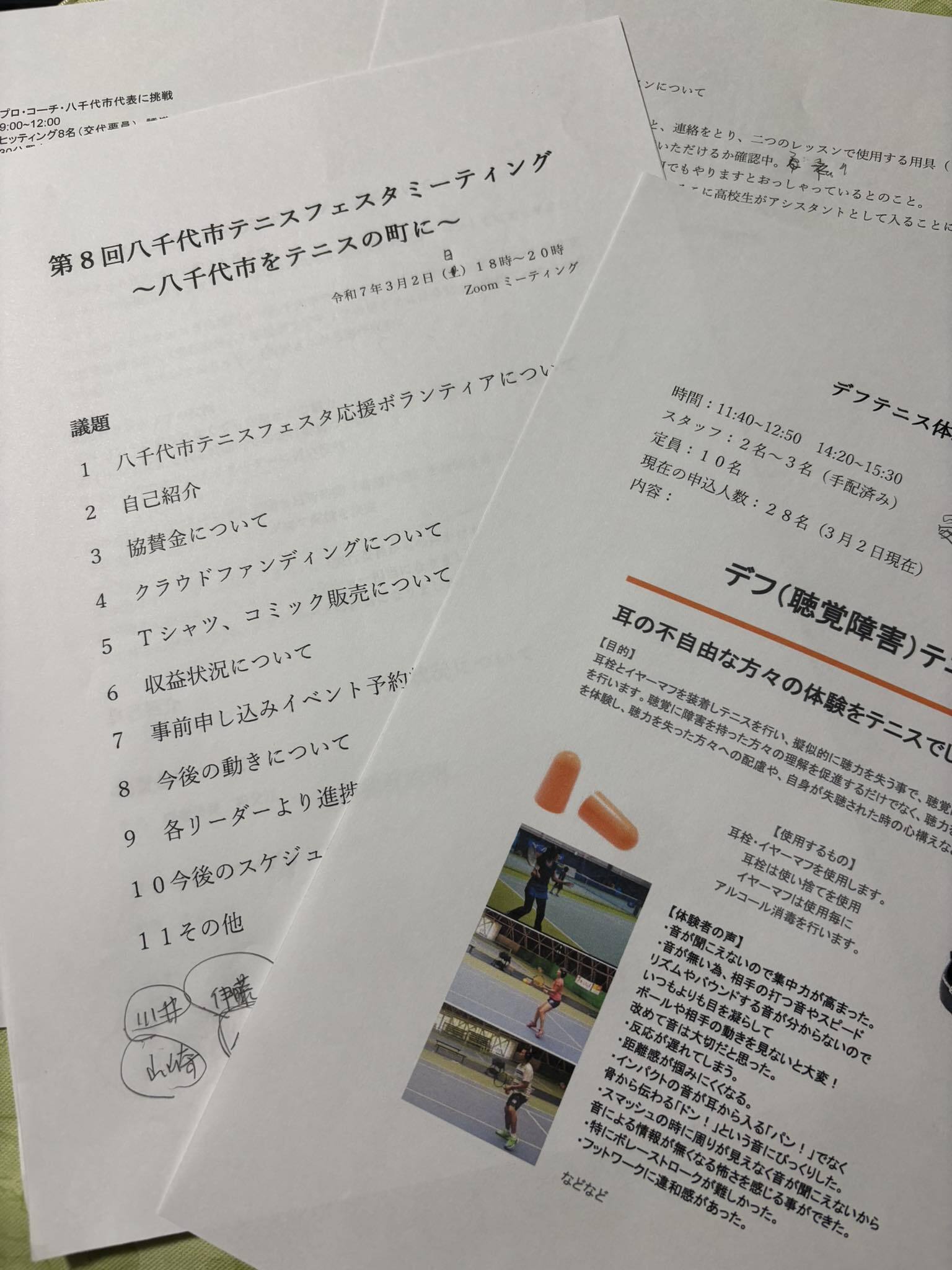 昨日は第8回全体ミィーティングを行いました。このミィーティングから応援ボランティアの方々にも加わっていただきました。お忙しいところありがとうございました。ちょうどミーティングが終わった頃に、あるテニス仲間から連絡がありました。その方は若くしてテニスクラブを立ち上げ、おそらく沢山の苦労を経て、今ではテニス界の発展に繋がる事を色々やっている方でFacebookを見て八千代市テニスフェスタに賛同していただき、どのような協力ができるのか、ぜひ協力したいと電話をいただきました。このことがすごく嬉しくて‥応援ボランティアの方のほとんどの方がこの気持ちで応援して頂いております。Excelも使えず55歳になってしまった能力の低い私が出来る事といったら地元のテニスを盛り上げるぐらいと思い、【八千代市をテニスの町にするために】を始め5年経って、八千代市テニスフェスタという大きなイベントに繋がりました。きっと能力の高い人、若い人ならもっとスマートに色々な事が出来ると思います。(もちろん既に色々な事をやっている方が沢山います。)それがテニス界の発展に繋がるのではないかと思っています。私は小さなテニススクールを運営し、レッスンもバリバリ行いながら、このイベントに向かっています。それは多くの人々の協力のおかげです。どこかで〇〇市テニスフェスタをやりたいって人がいたら、気合いと覚悟があれば誰でも出来ると思います。もしそんな気持ちの方がいたら、応援ボランティアに入ってみませんか?その第1歩になるかもしれません。応援ボランティアはフル参加でお手伝いしてくれる方も、半日だけお手伝いしてくれる方も、告知等の協力だけの方もおります。八千代市テニスフェスタ応援ボランティアに興味がある方はメッセージにてご連絡下さい。テニスが好きな方、テニスやった事無いけどこの機会にテニスやってみようかなって方は八千代市テニスフェスタに是非参加して下さい。みんなでテニスをいちばん楽しむ日になるようなイベントにしたいと思っています。#八千代市テニスフェスタ#八千代市をテニスの町へ#リニューアルオープンイベント#クラファン#キャンプファイヤー#応援ボランティア募集中#八千代総合公園テニスコート#テニスが人をつなげるクラファンのご協力もお願い致しますhttps://camp-fire.jp/projects/828766/view