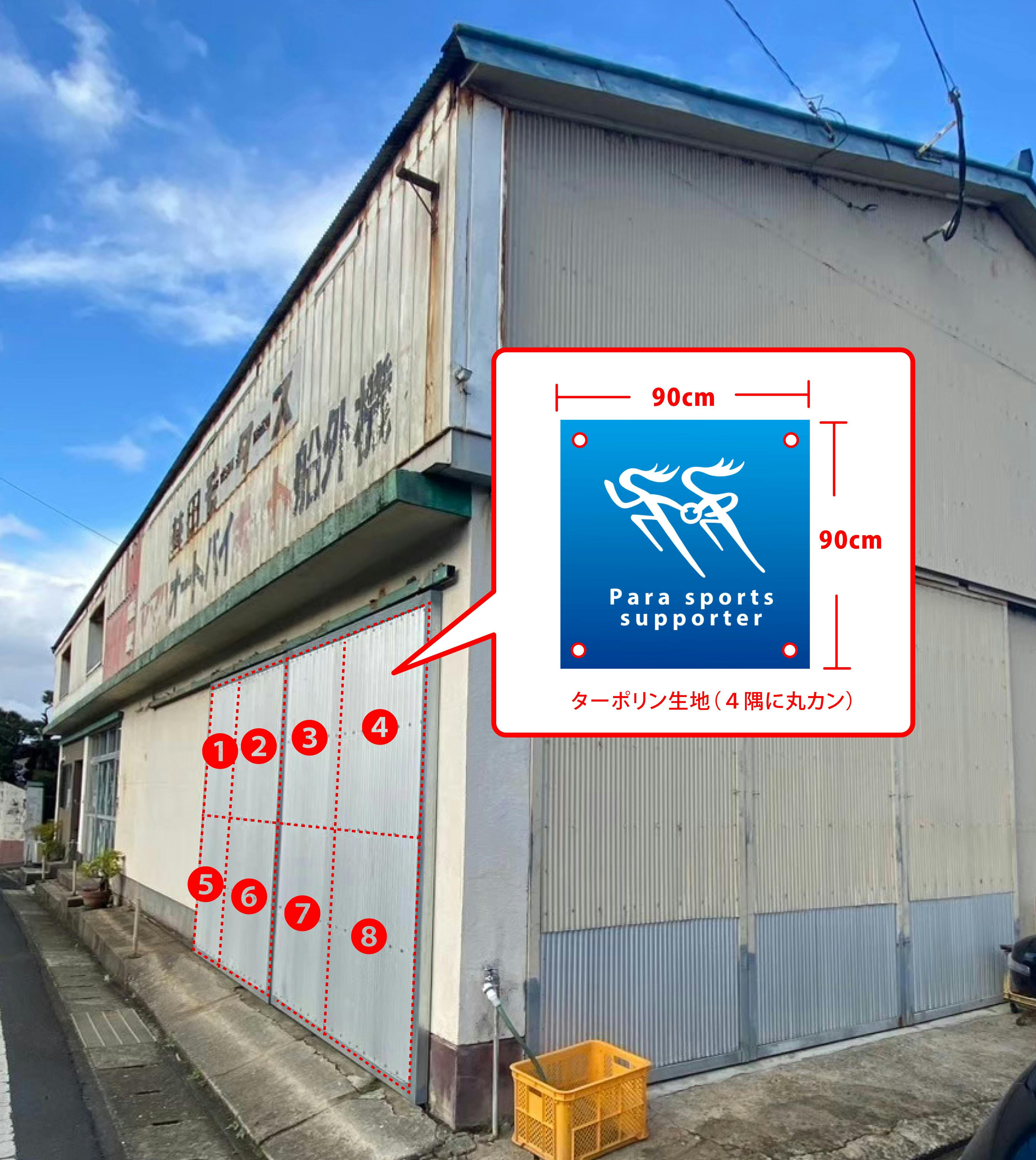 企業や団体のロゴ入りタペストリーを、タンデム自転車の車庫に1年間掲示します。