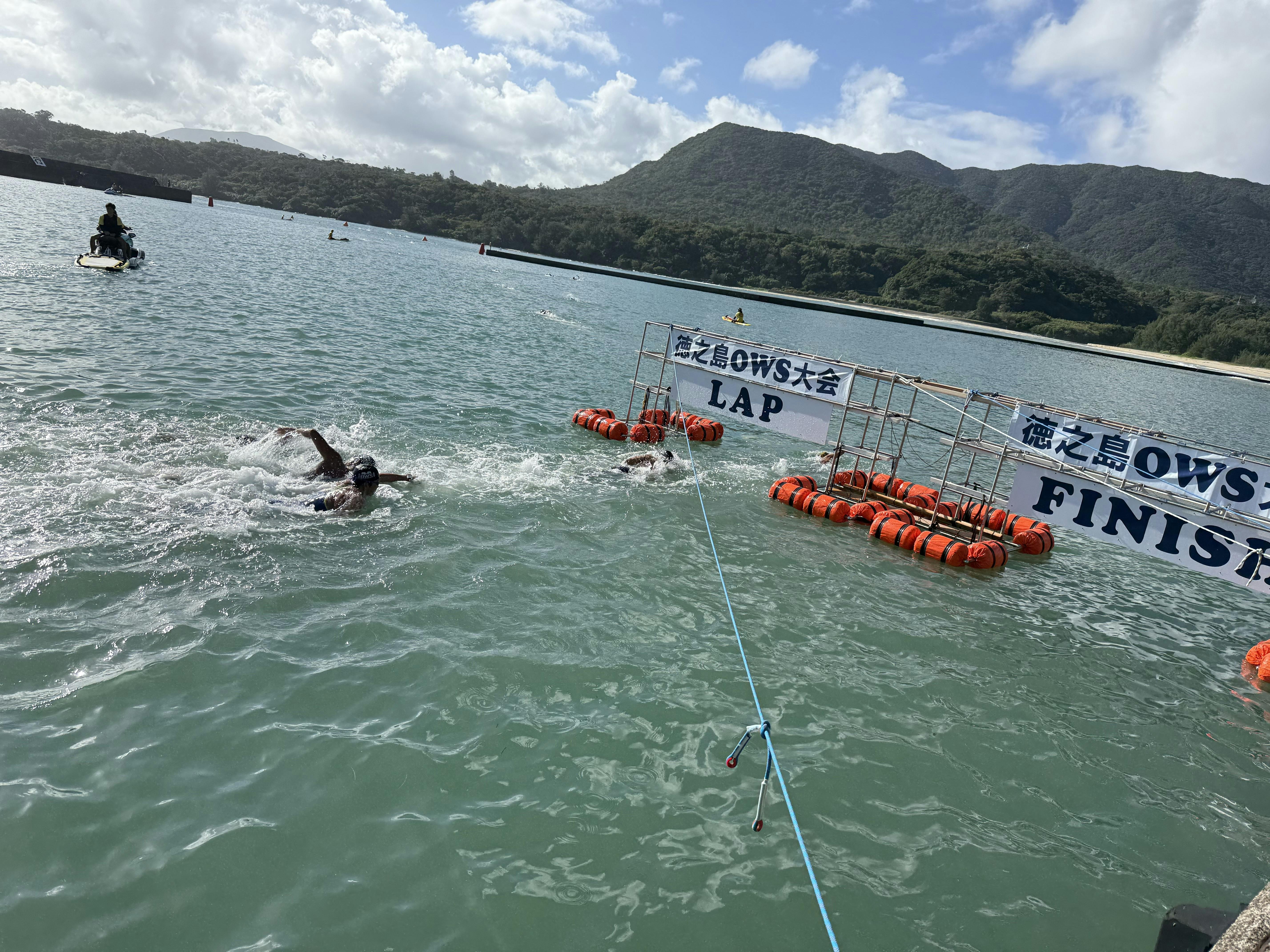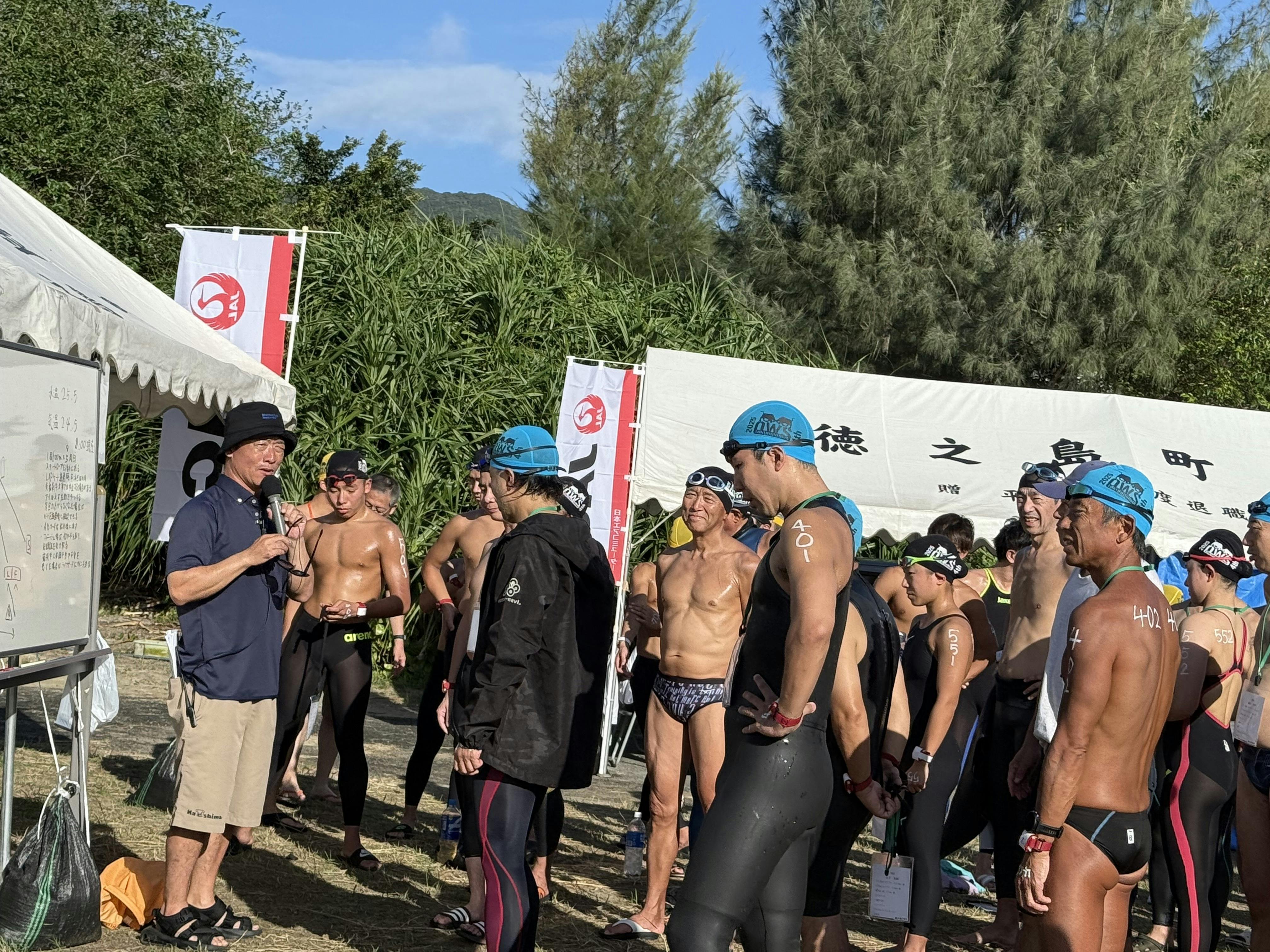 島で過ごす最後の日は島で行われるオープンウオータースイミングを見に行って奄美群島名物の鶏飯を食べに行くことくらいしか予定もなくのんびり。今日の一番のミッションは帰りのフェリーに遅れないことかもしれない。途中闘牛用の牛が道路脇で寝そべっているのを見たりしながら大会会場に到着。佐多さんに一昨日紹介していただいたトライアスリートの藤野さんも会場に来ている。仲間の補給サポートのために来ているとのこと。彼は翌日3キロの部で3位表彰!