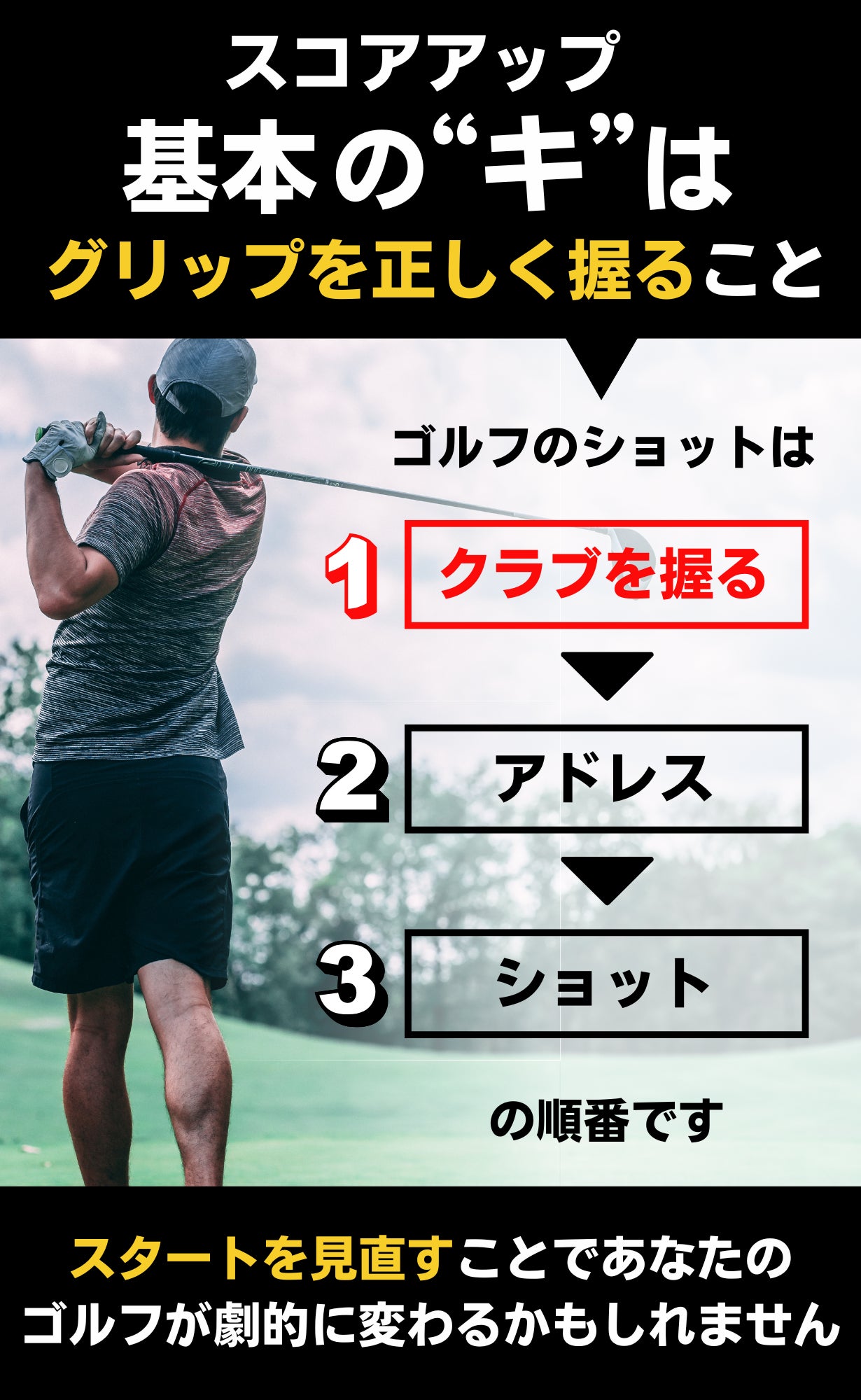 いくらスイングを直そうとしても、グリップが安定していなければ、スイングの再現性は上がらず、ミスが減ることはありません。