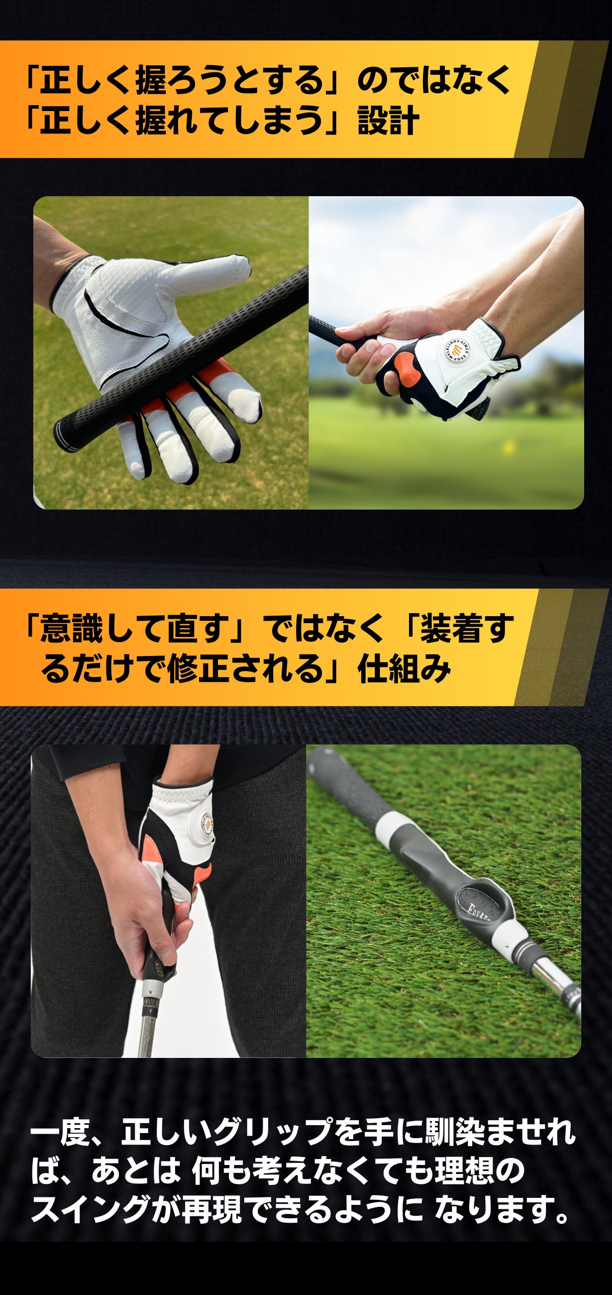 ただ装着するだけで、 正しいグリップを習得し、スイングの再現性を劇的に向上させます。