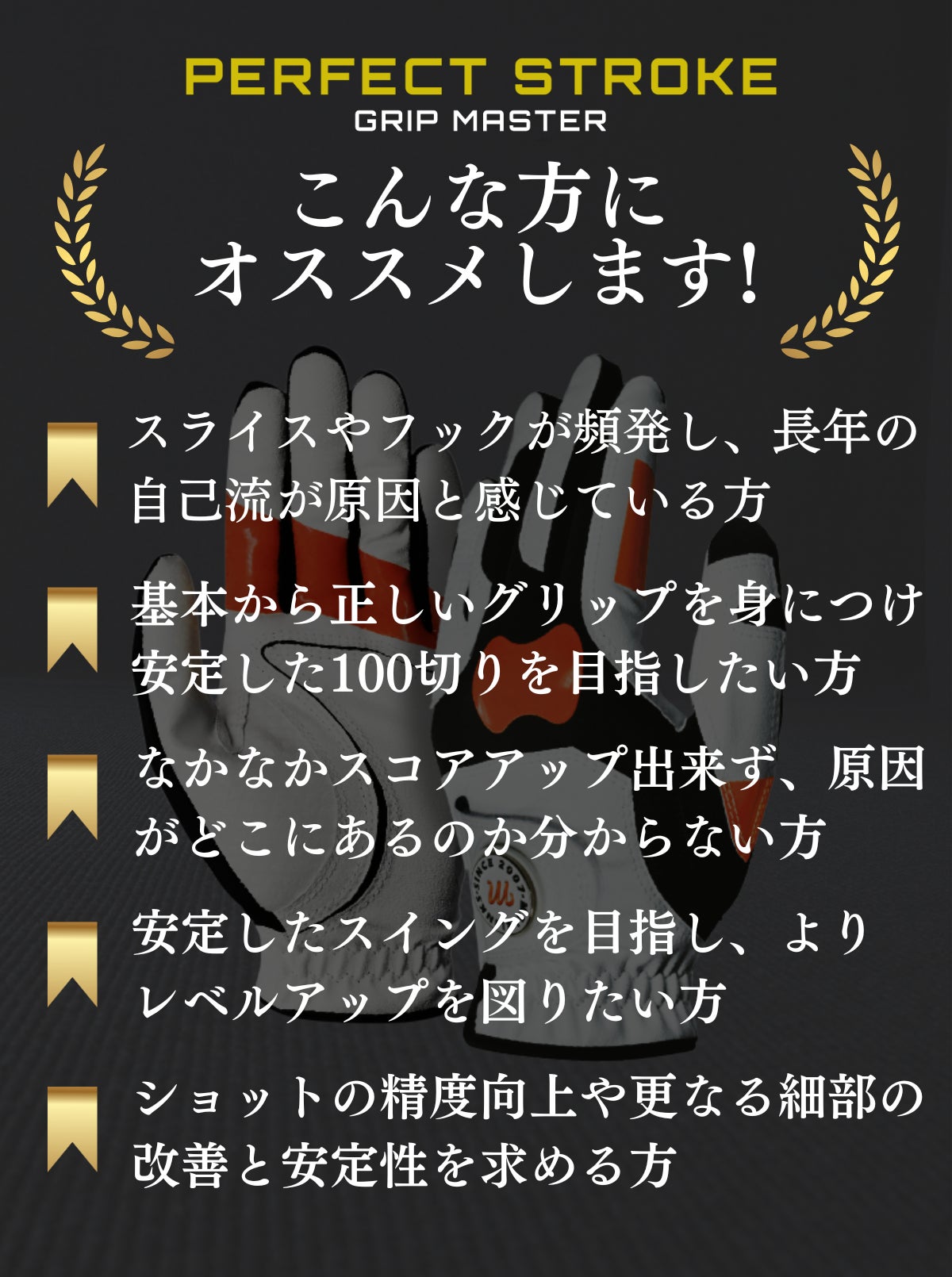 「握り方がわからない初心者」から「グリップの見直しをしたい上級者」まで、あらゆるレベルのゴルファーに効果的。