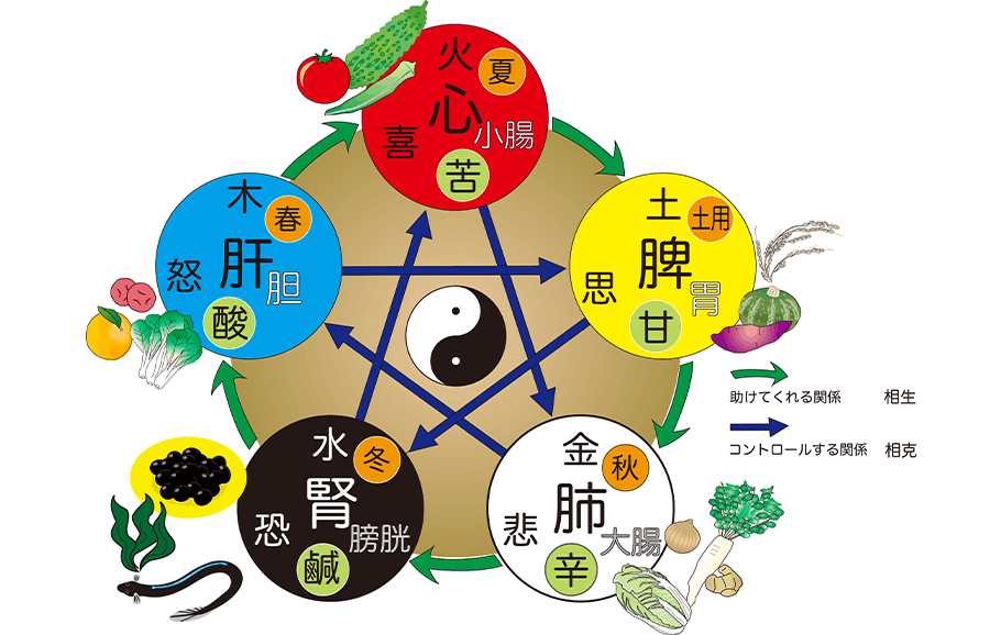 東洋の伝統的な健康観である陰陽五行説を現代の食生活に取り入れます。