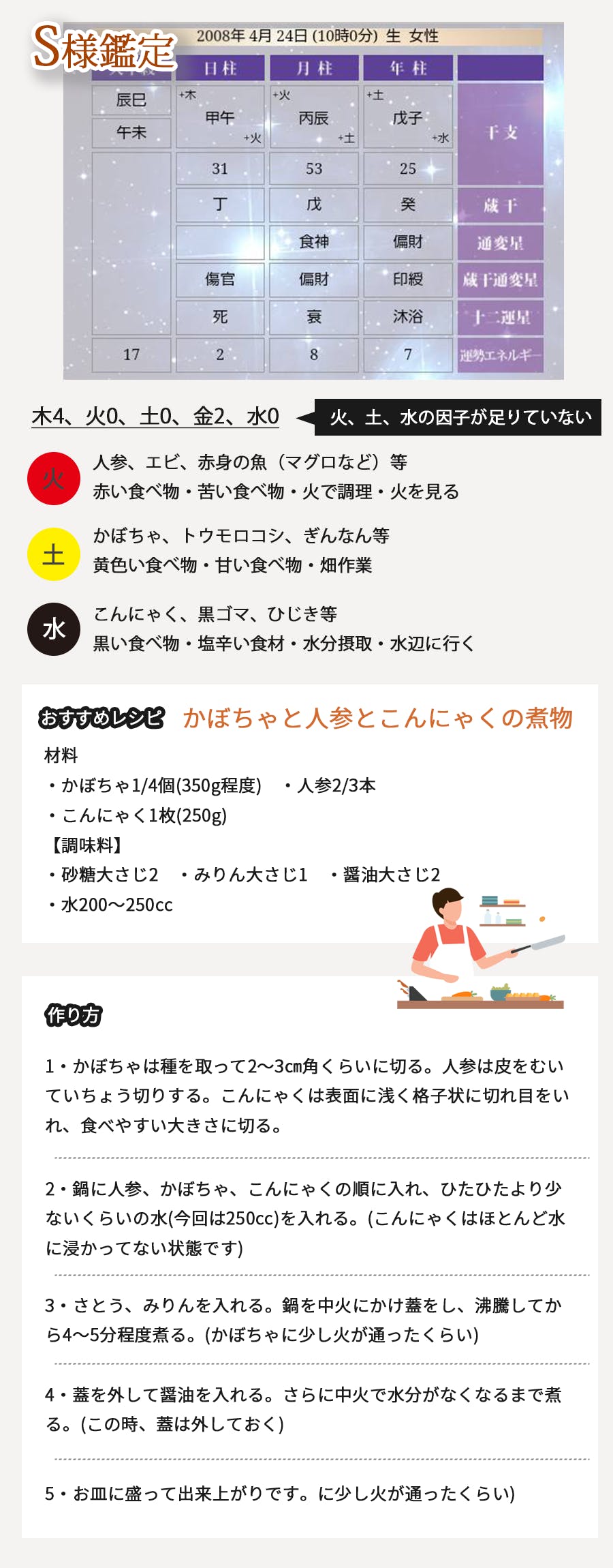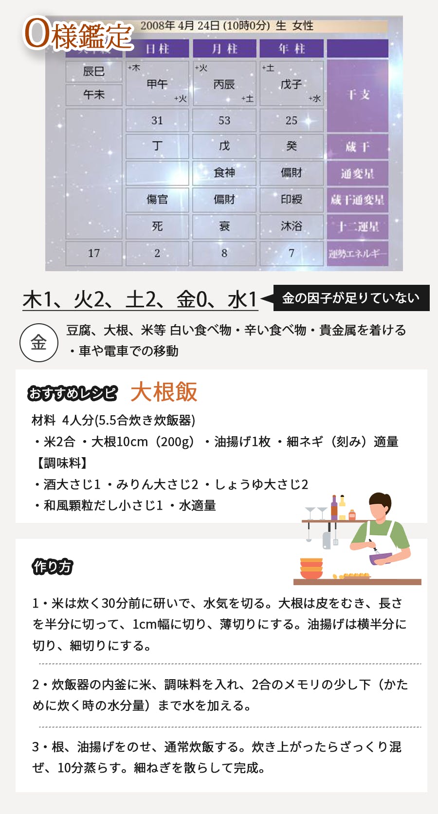 四柱推命ミニ鑑定付きカスタマイズレシピ提案