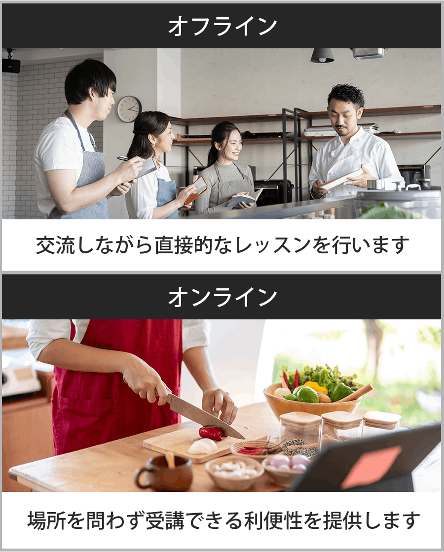 地理的な制約を超えて多くの方にサービスを提供するため、オンラインとオフラインの両方で教室を開催します。