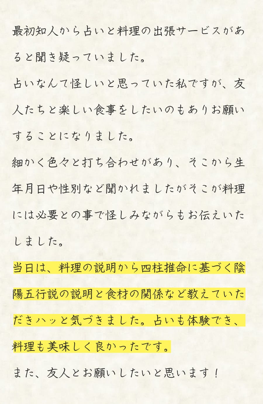 四柱推命ワンポイント鑑定orととのうレシピ2品(陰陽食材それぞれが入ったもの)or御礼の手紙