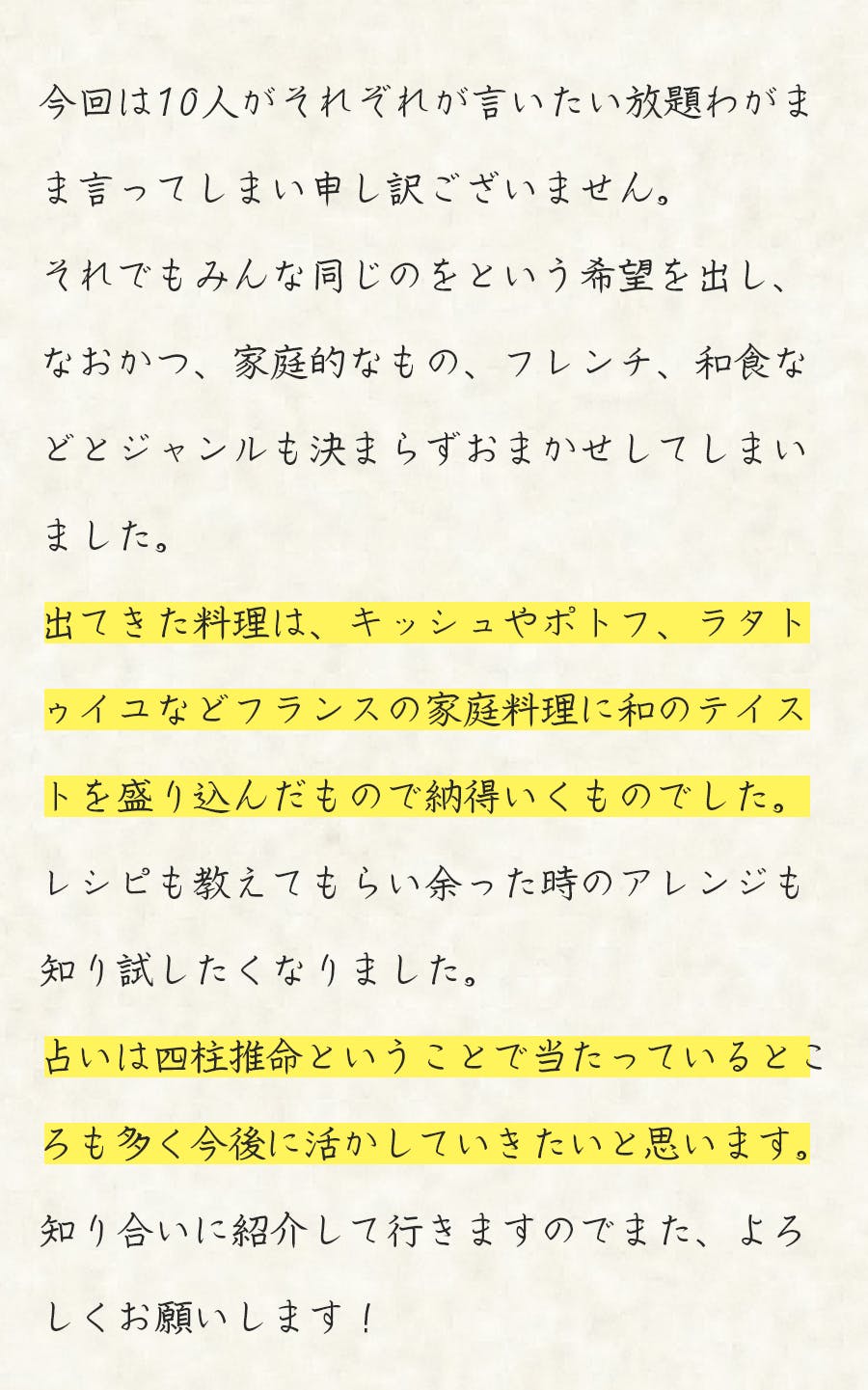 和食、寿司、沖縄料理など幅広いジャンルでの料理経験と、四柱推命の深い知識を組み合わせることで、単なる料理教室や占いセッションでは得られない、アドバイスと実践的なレシピを提供します。