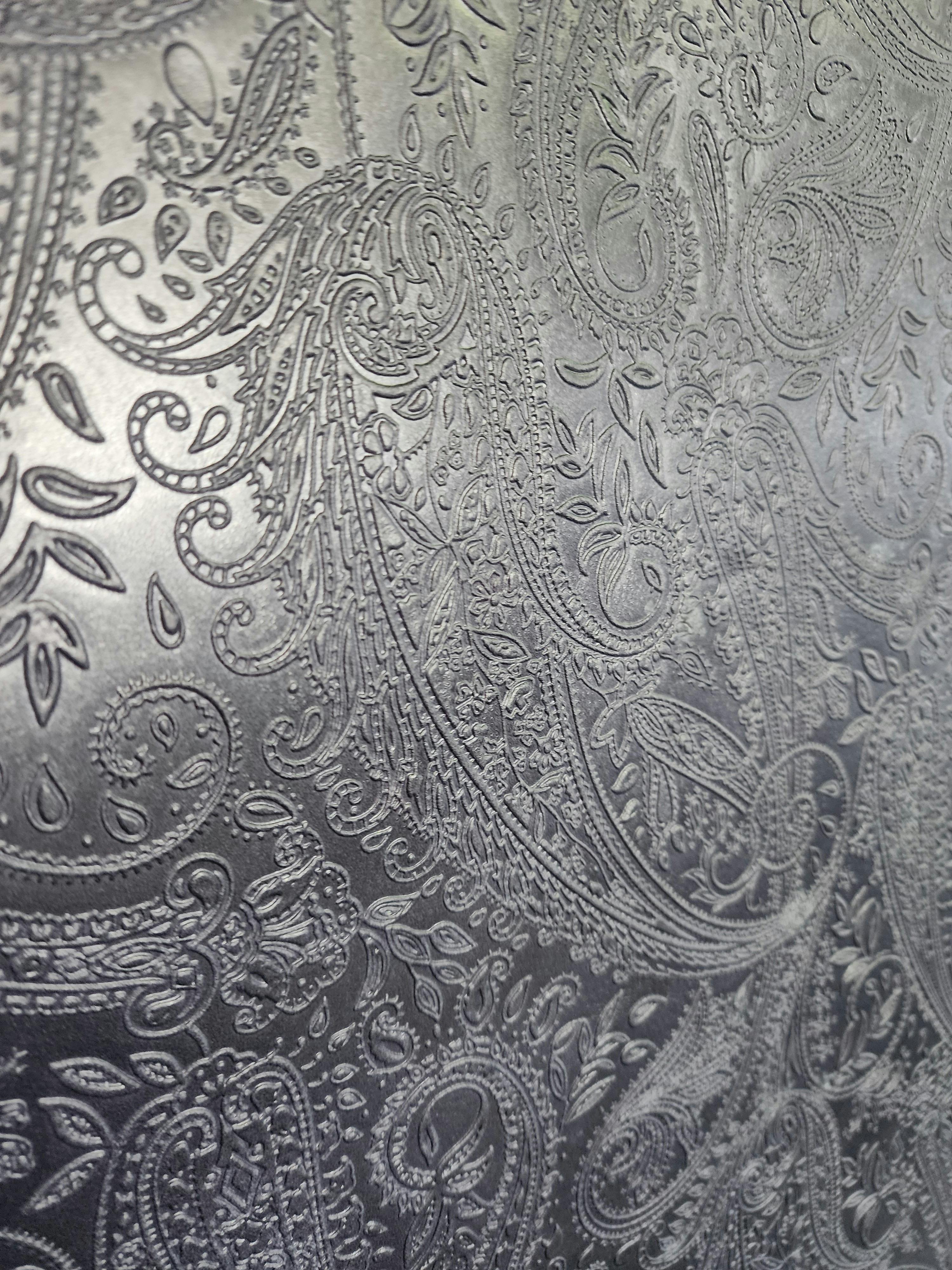 ・ペイズリー型を押した上から黒く塗料を吹きます。