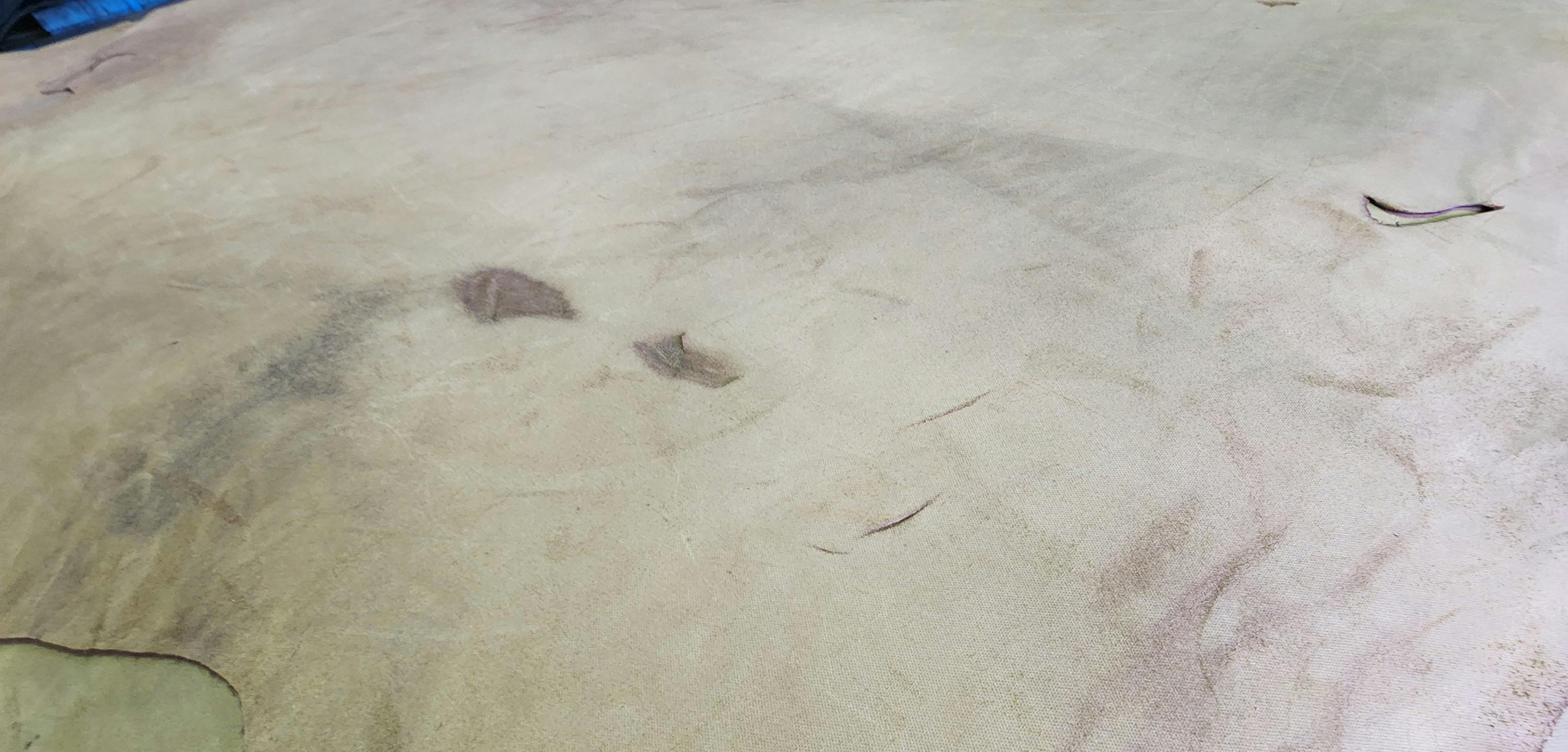 ・タンナー(皮製造)では、キズ、シワ、色のぶれなどで、返品されてしまう皮。