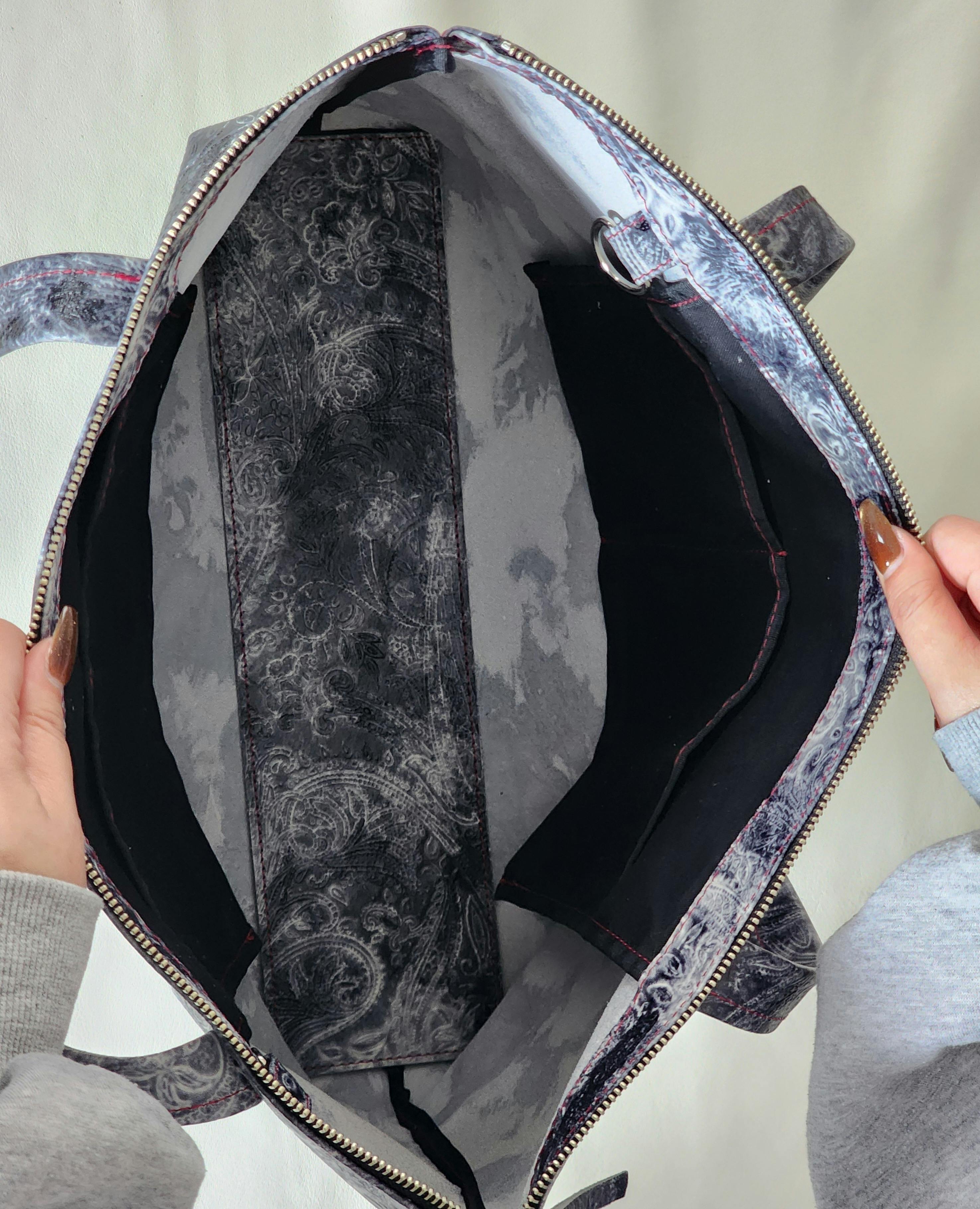 ・物をたくさん入れても下に負担がかからない様に底板を入れています。底板の表側には革を使用しています。