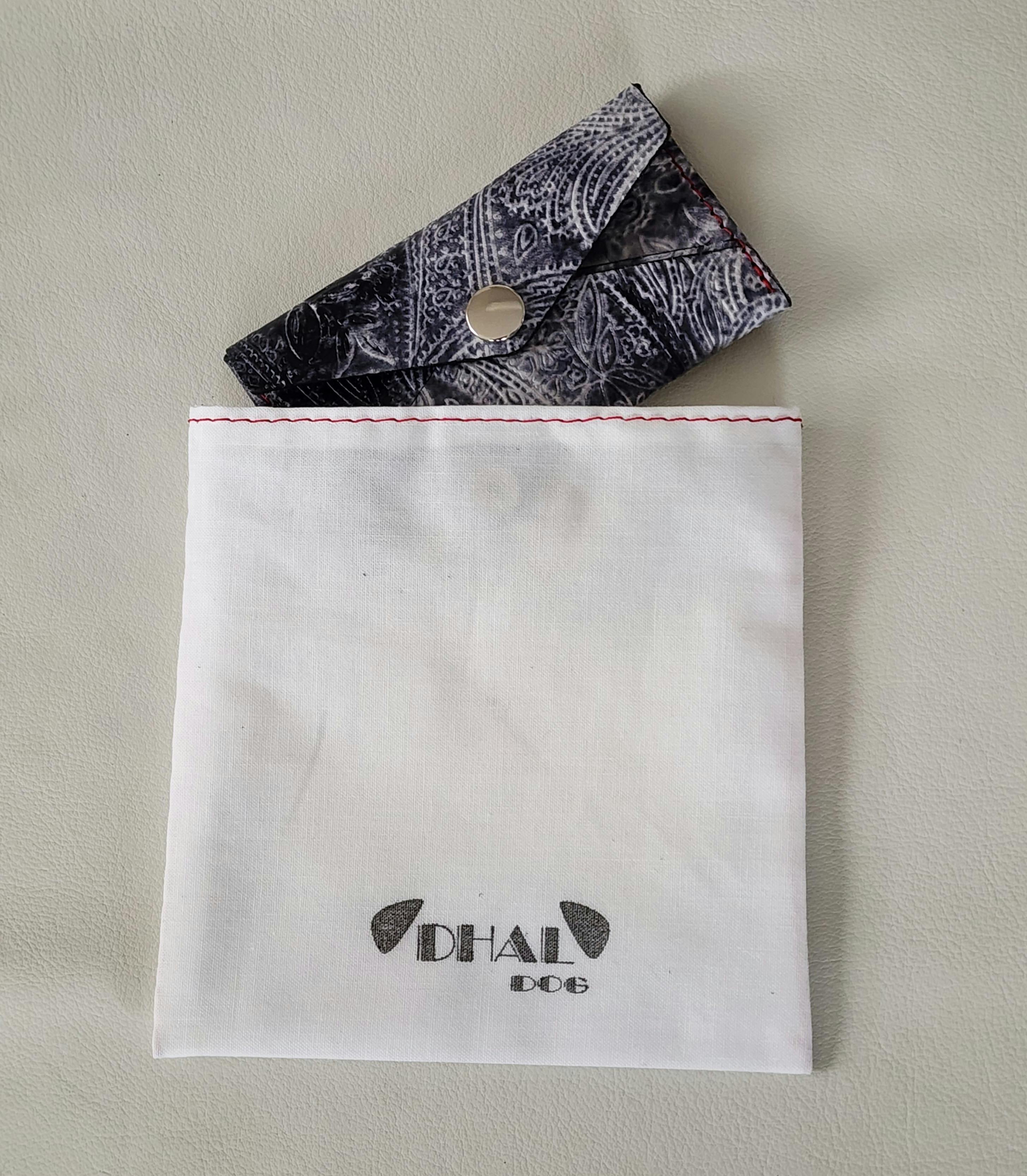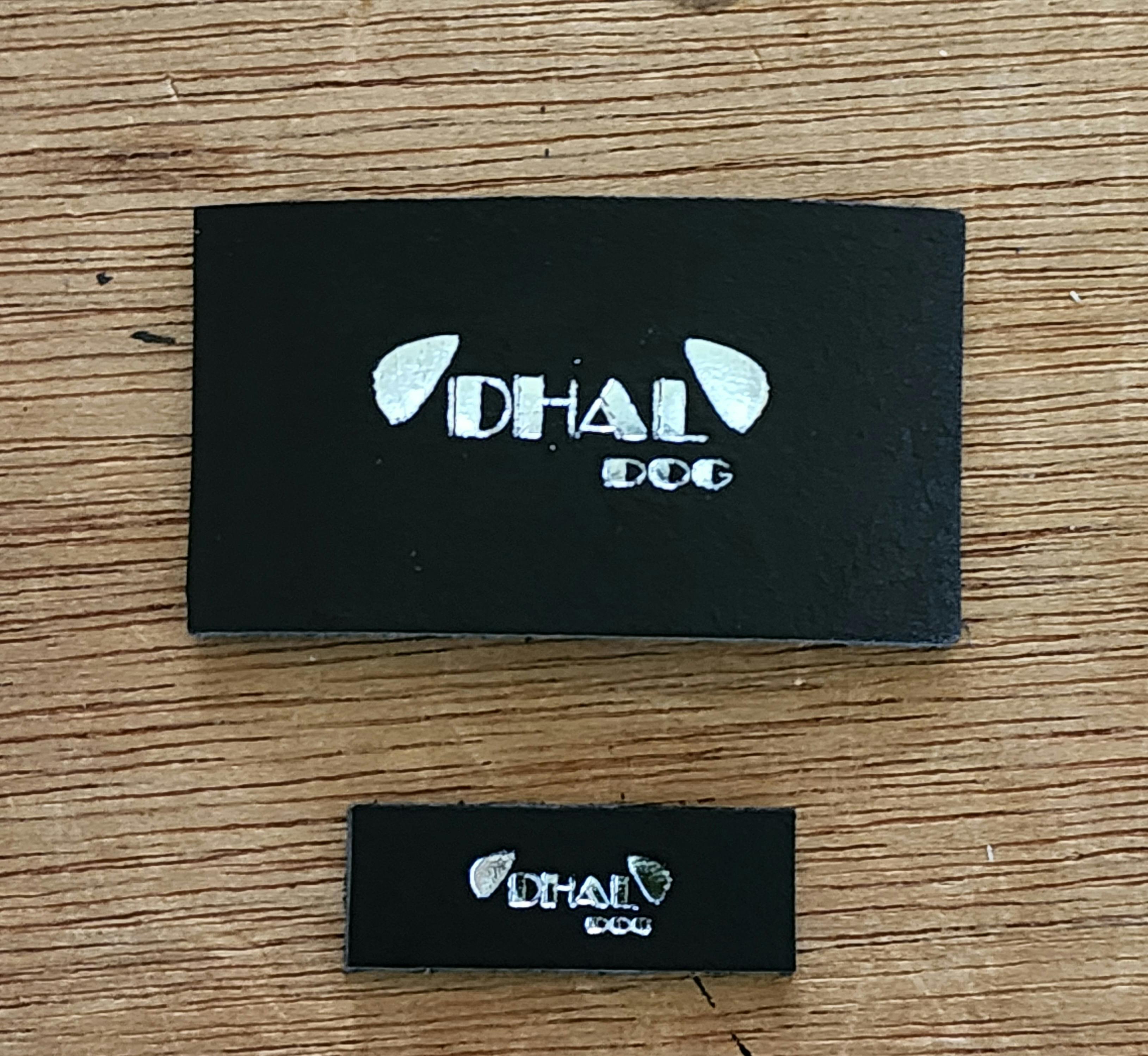 「DAHL.DOG」の商品には、すべて箔押しされたロゴタグがはいっております。