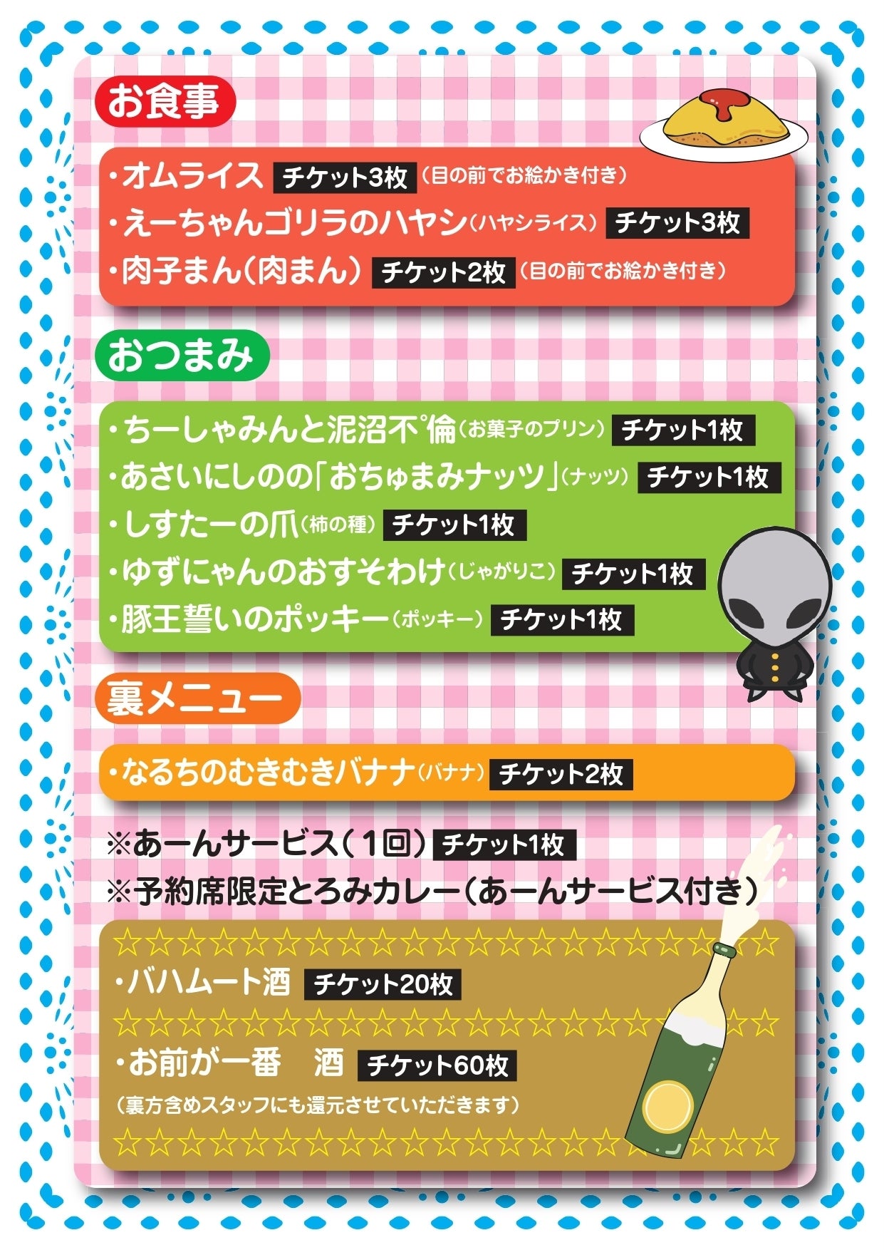 メイド喫茶でおなじみの「萌え萌えキュン」やメイドさんが目の前でお絵かきをしてもらえるオムライス、好きなキャストさんと一緒に撮影できるチェキなどを準備し、当日は大盛況でした。