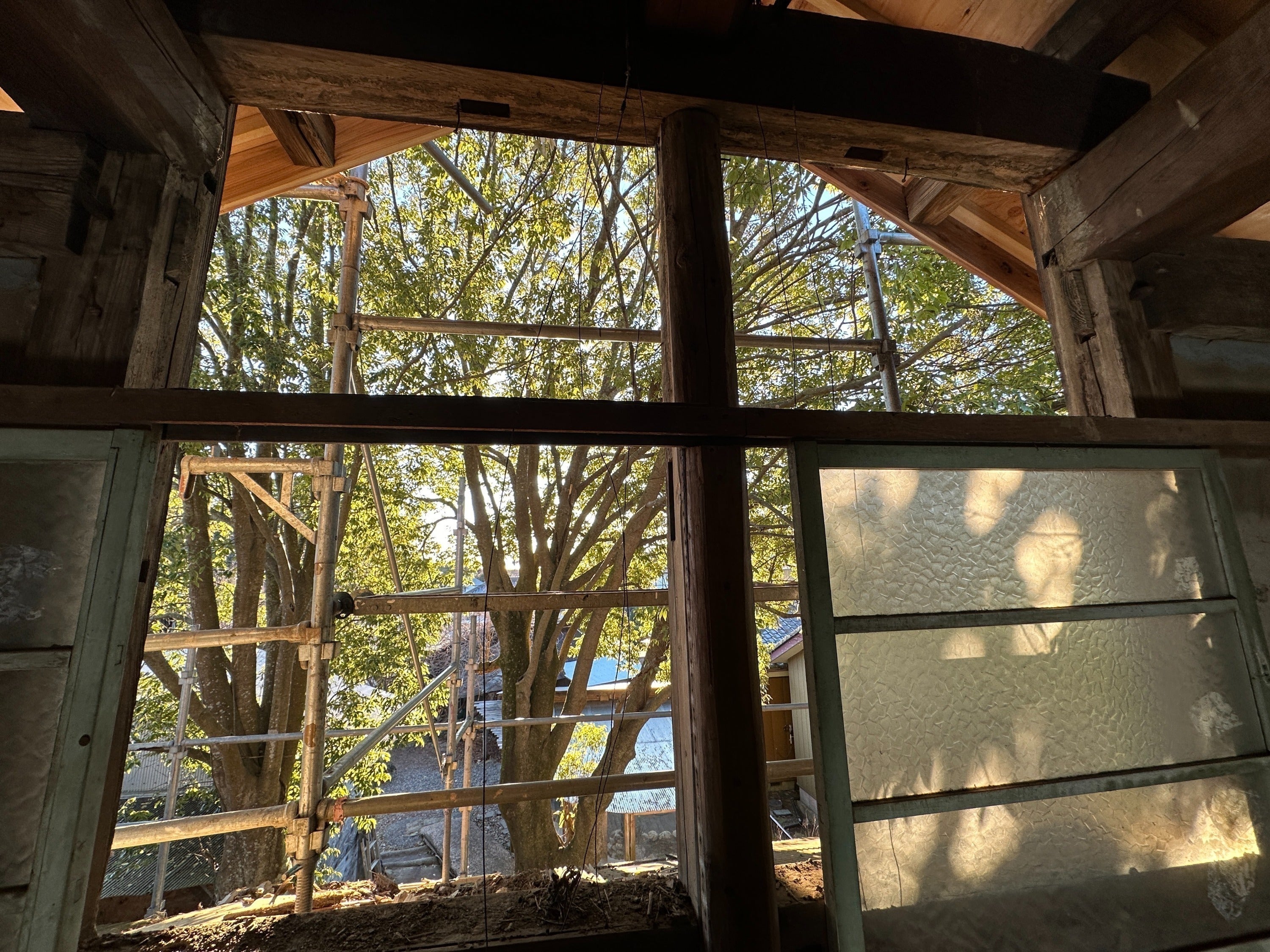 新しいBBQ場をつくるため、敷地内古民家をリフォームしています。現在は屋根のリフォームをしています。