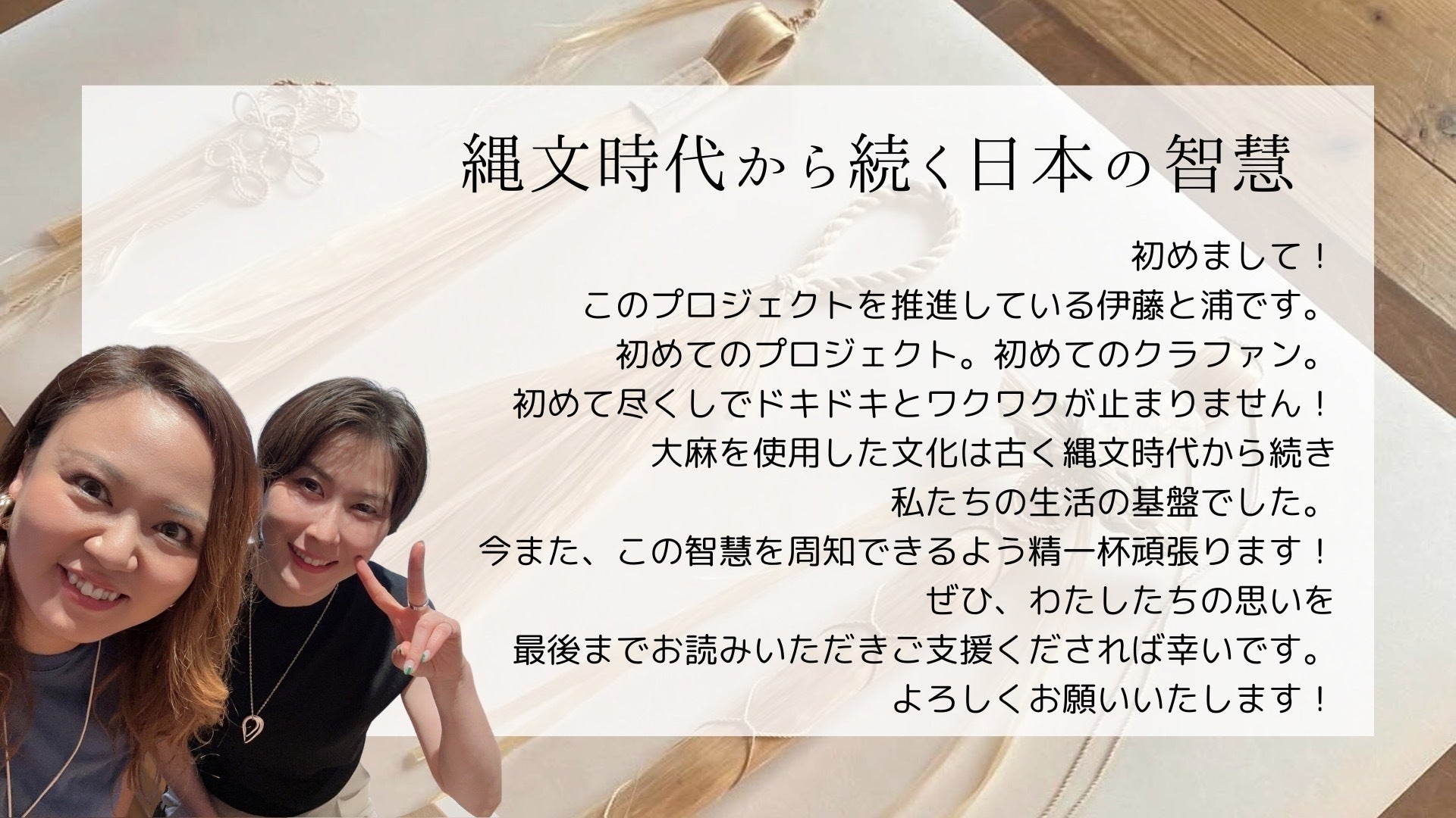私たちのプロジェクトに興味を持っていただき、心より感謝申し上げます。大麻のエネルギーを地球で結びたい!「全」のエネルギーが広がったら、どんな素敵なことが起こるだろうか。ワクワクしています。そんな大麻のエネルギーと日本の伝統文化を世界へ地球へ広めるという挑戦に、ぜひ皆様のお力をお貸しいただければ嬉しいです。このクラウドファンディングを通じて、世界をまぁるく結ぶひとつの力として、また、共に新しい文化交流の形を創り上げていけることを楽しみにしています。ご支援のほど、どうぞよろしくお願いいたします。