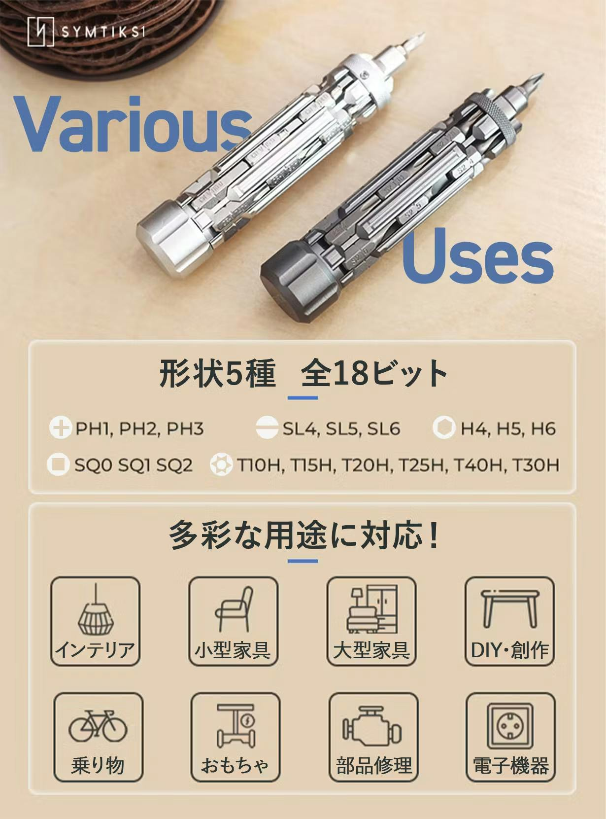 ガジェット好きの心をくすぐり、しかもハンドルやビット収納でコンパクトと利便性の高さも魅力的なSYMTIK S1を皆様にも体感してもらいたいと思い、本プロジェクトを立ち上げました。